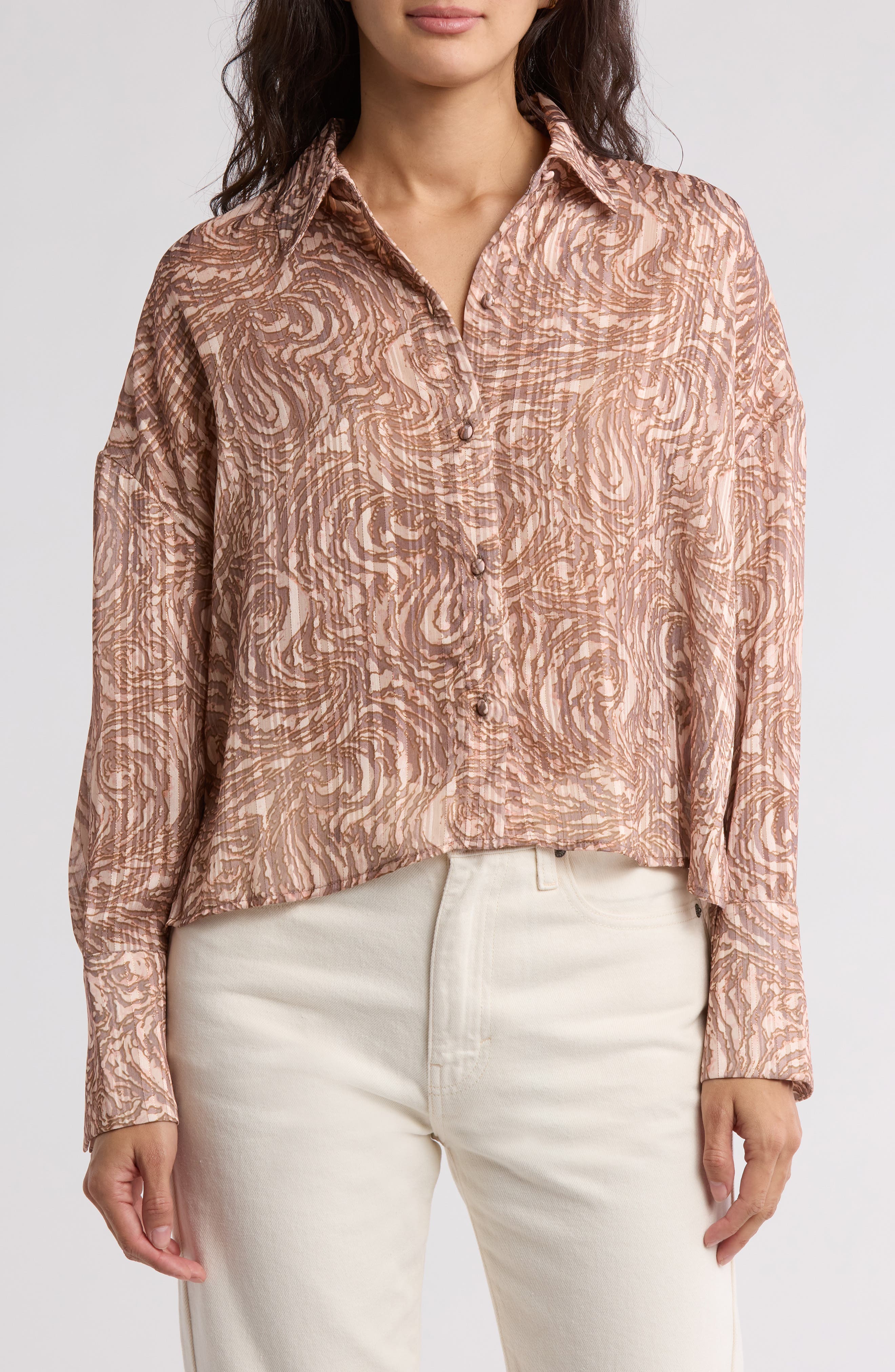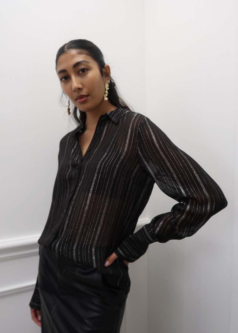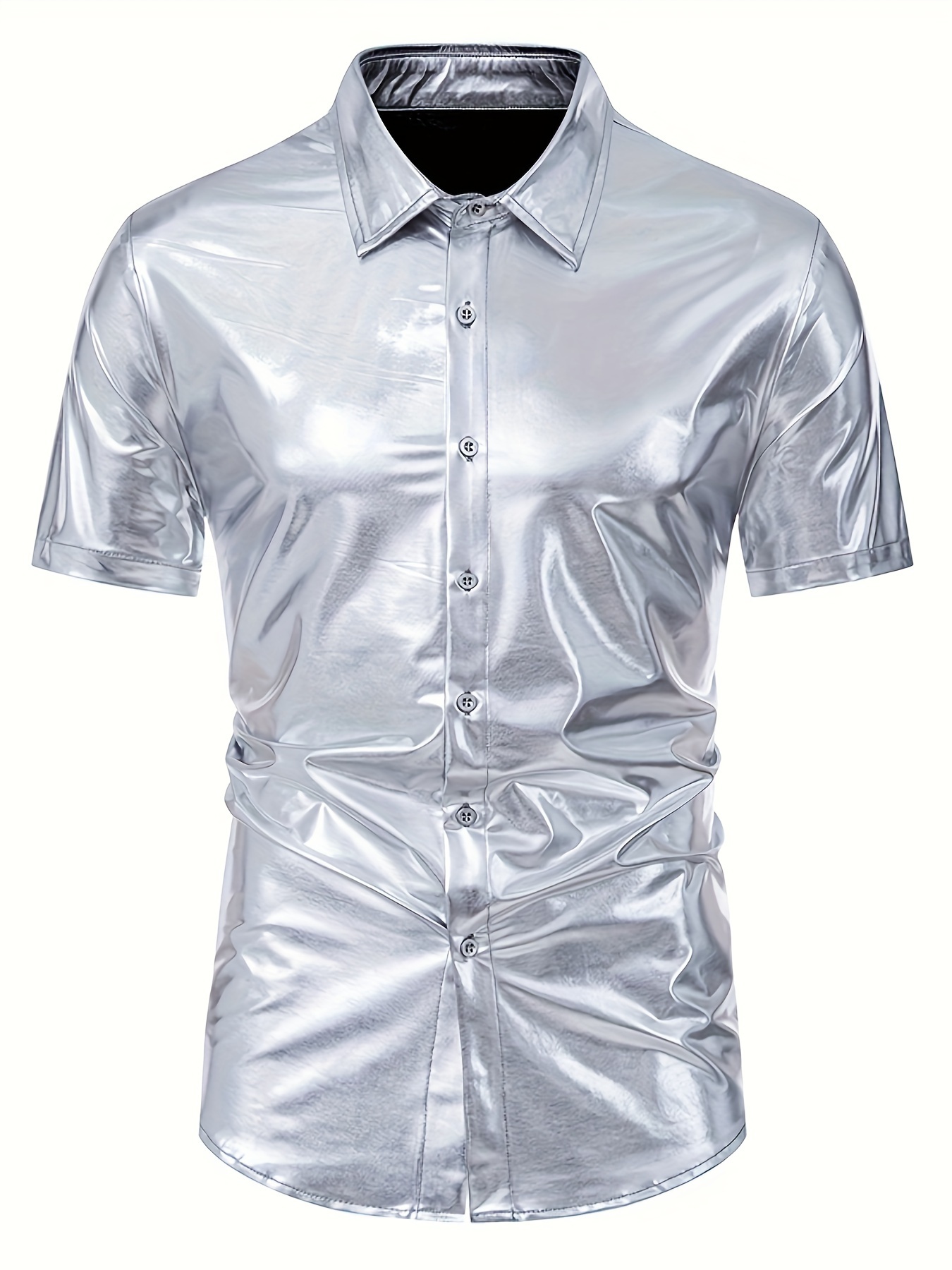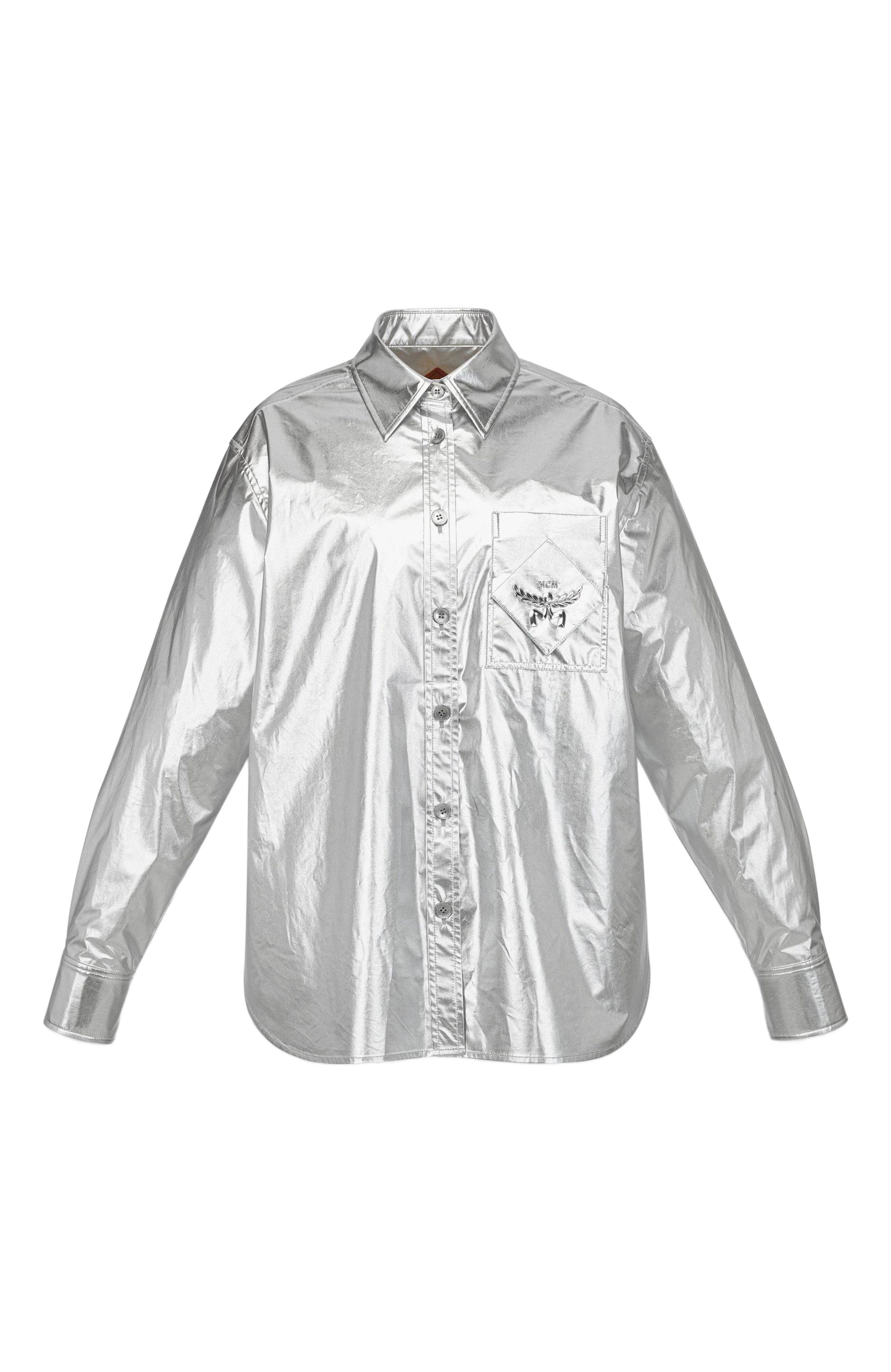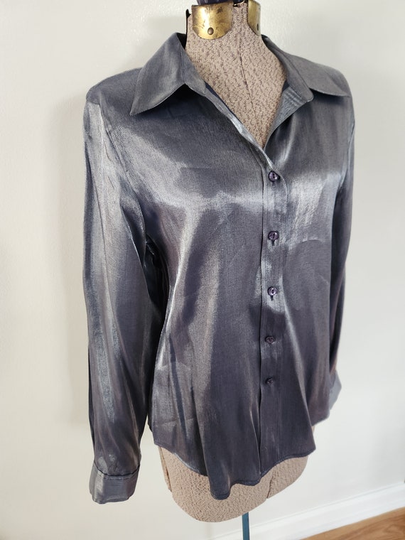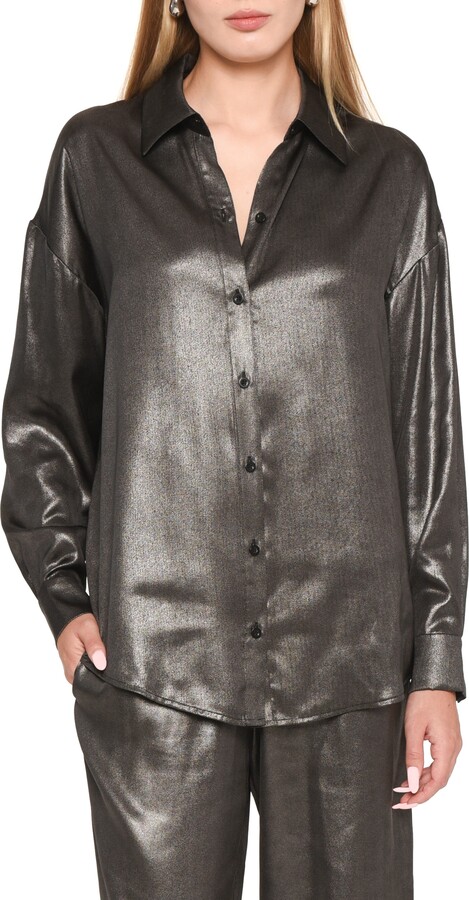 metallic button up shirt