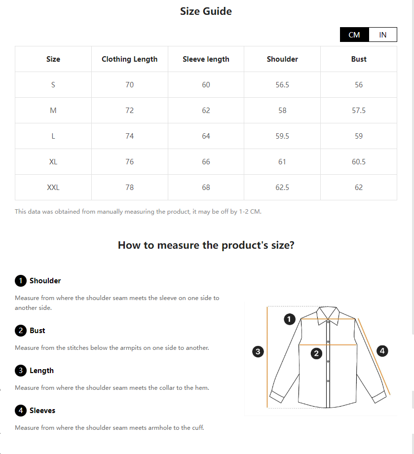 mufti size chart