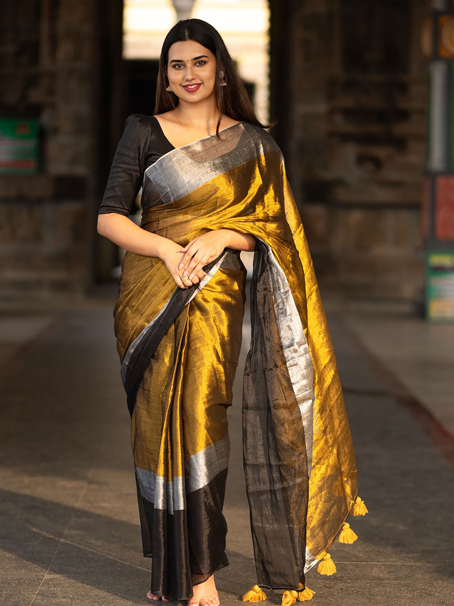 multicolour blouse with plain saree
