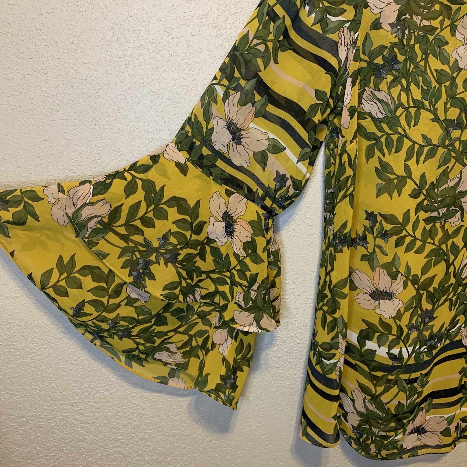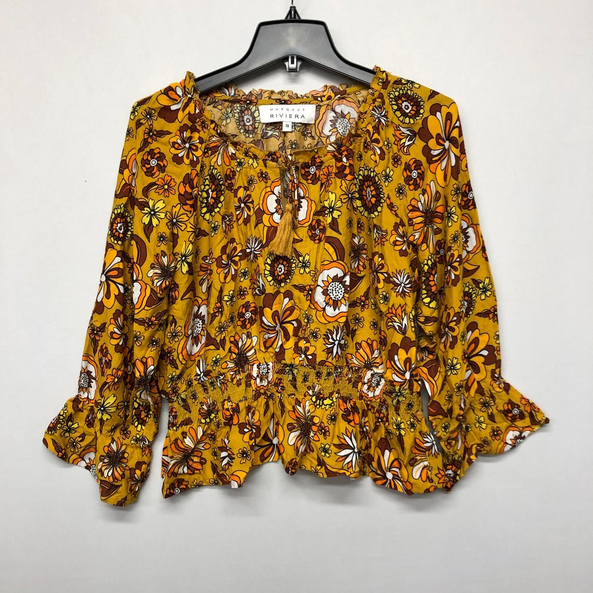 mustard floral blouse