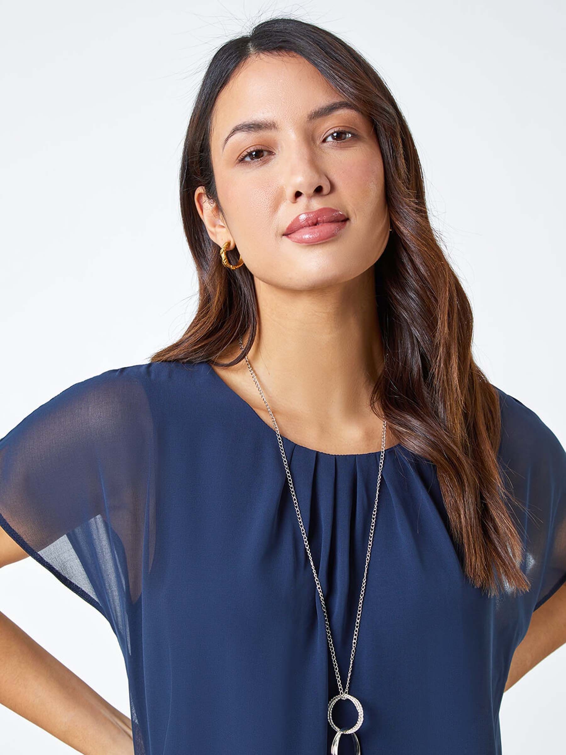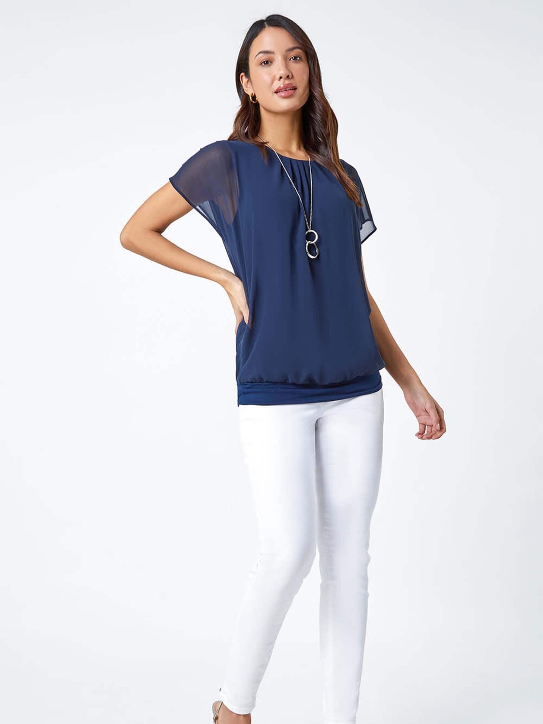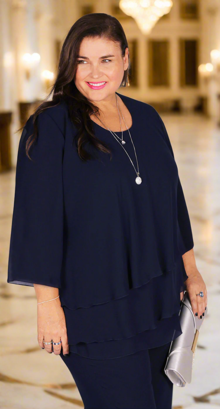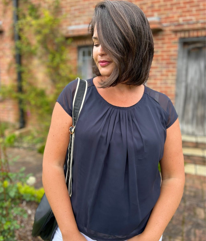 navy blue chiffon top