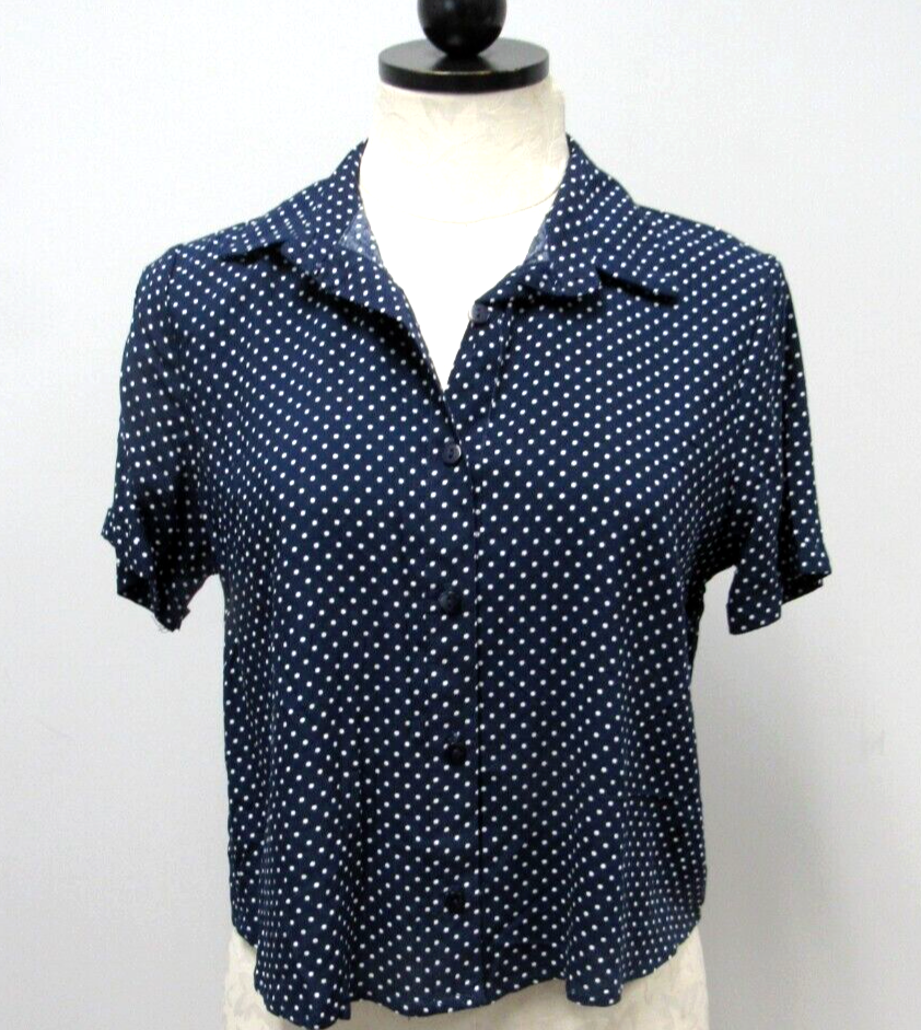 navy blue polka dot top