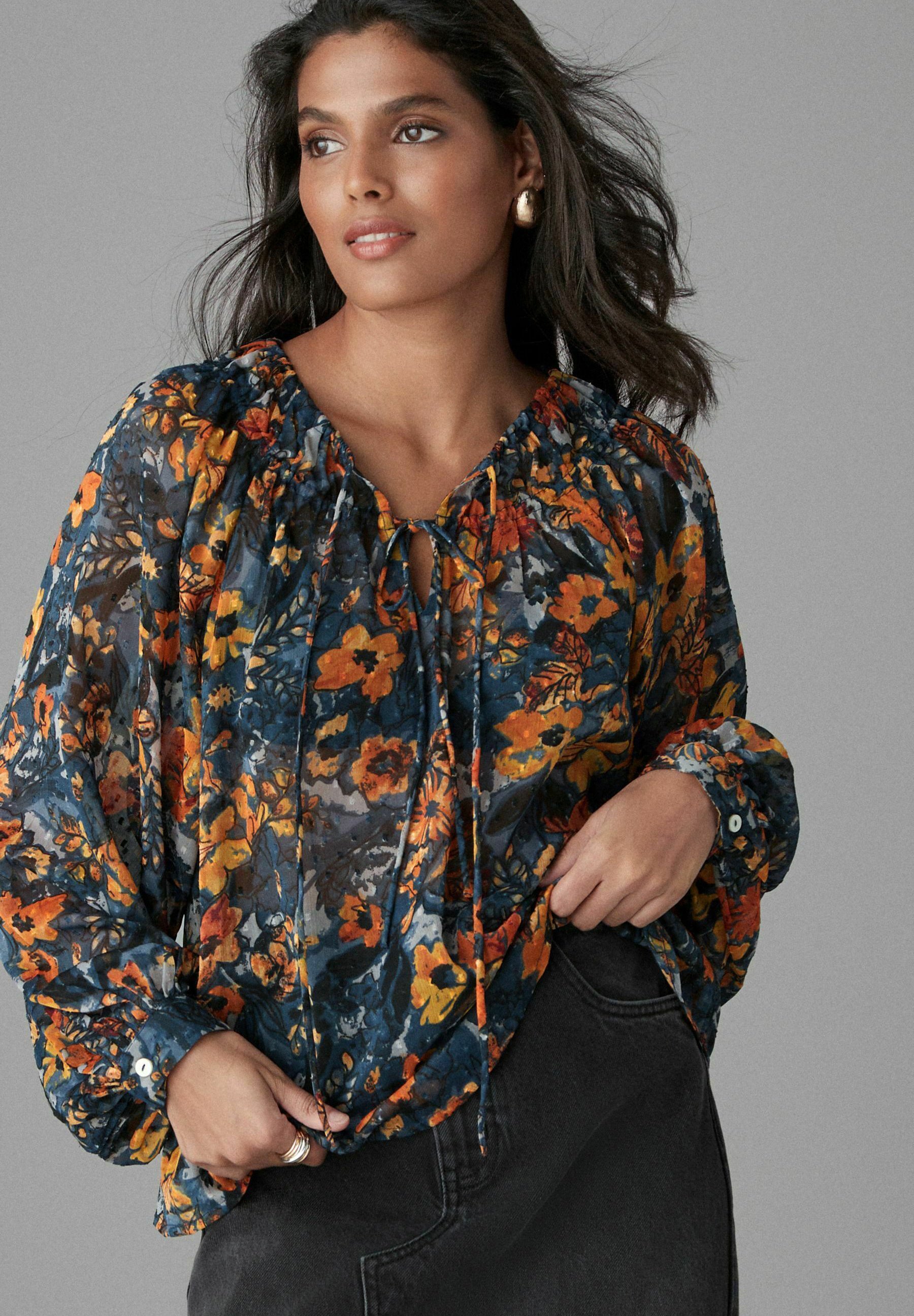 navy blue sheer blouse