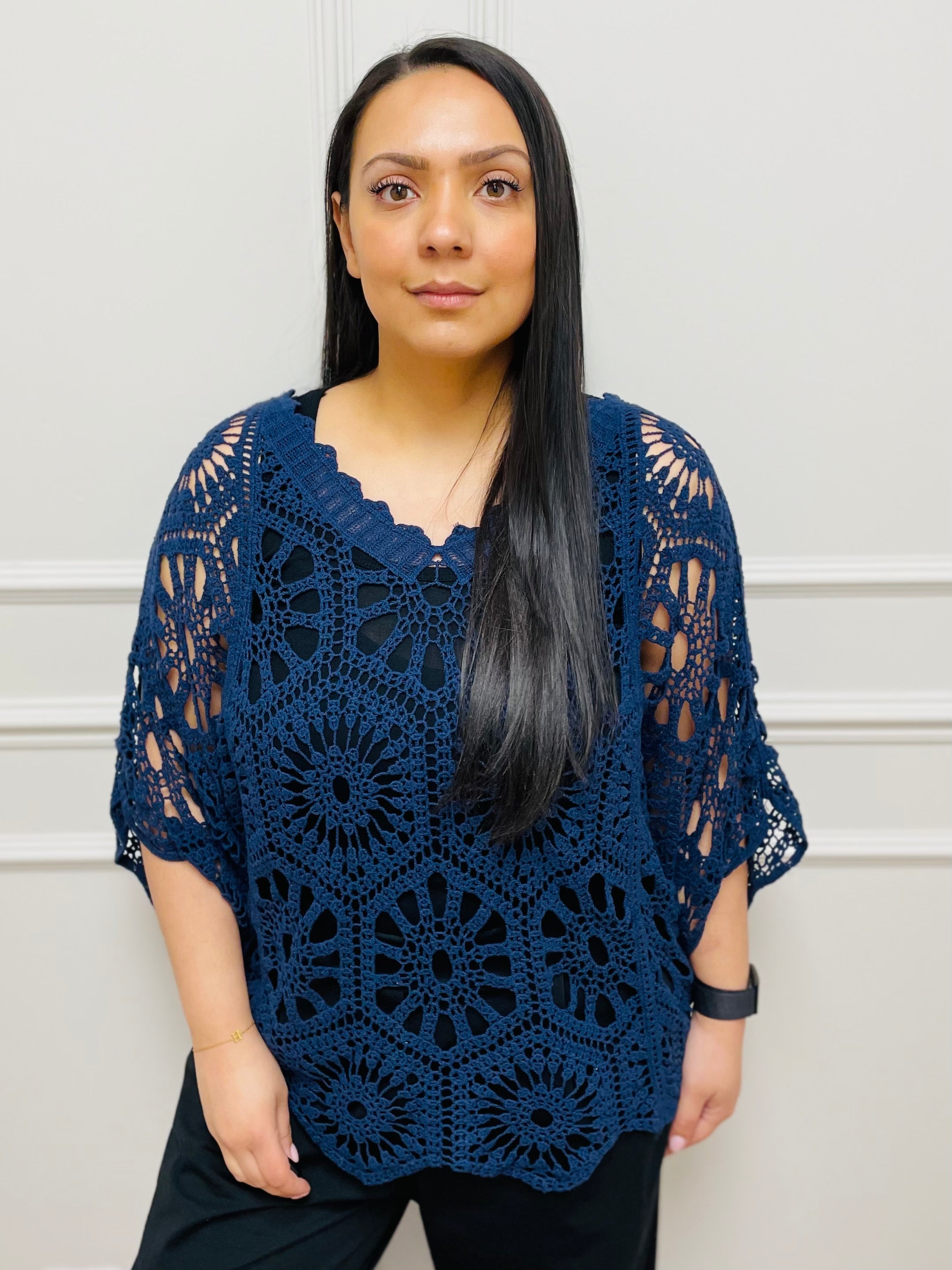 navy crochet top
