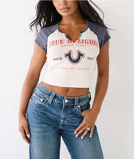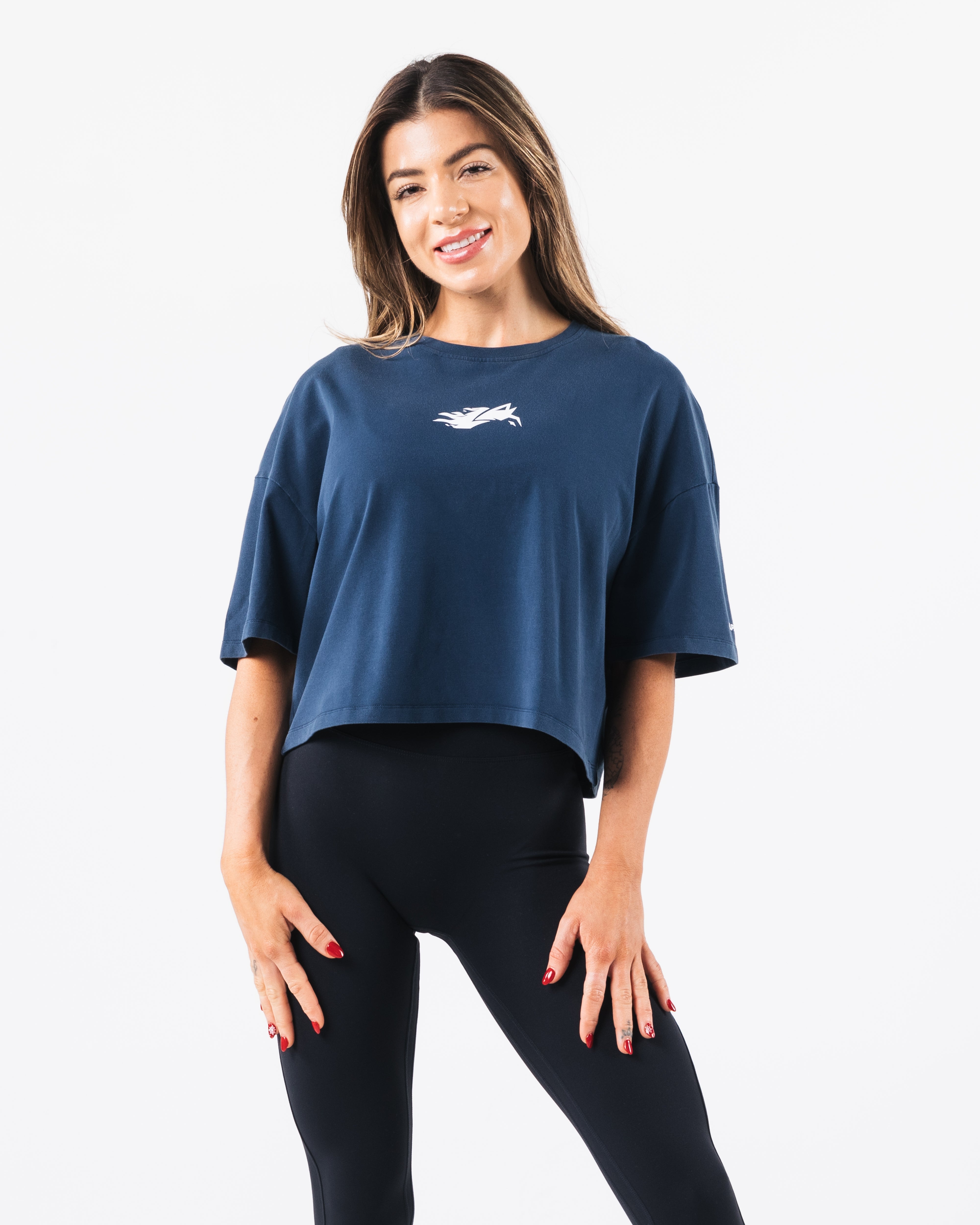 navy crop tee
