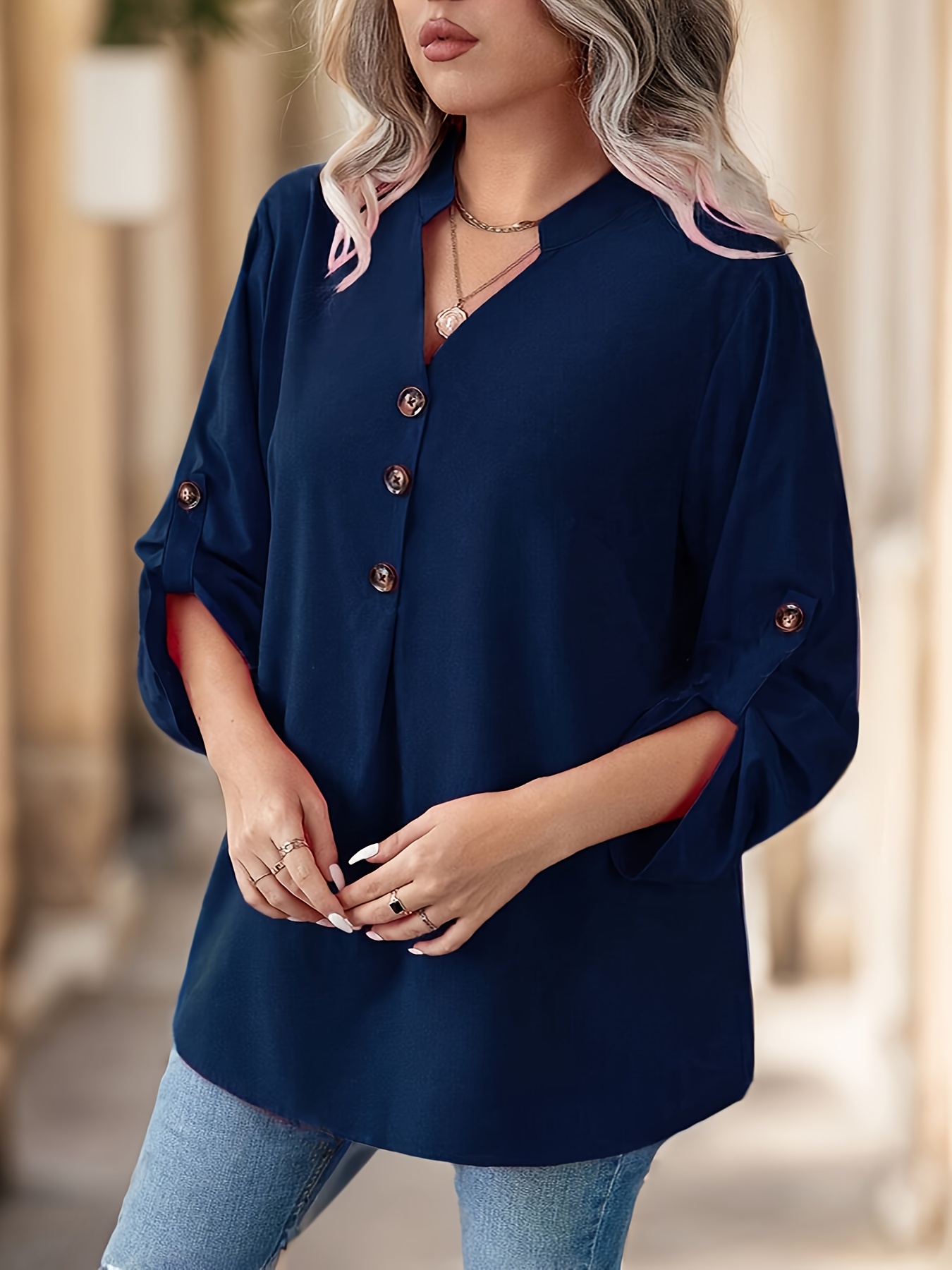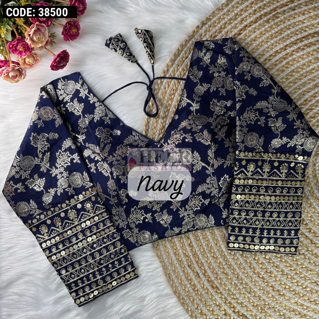 navy patterned blouse