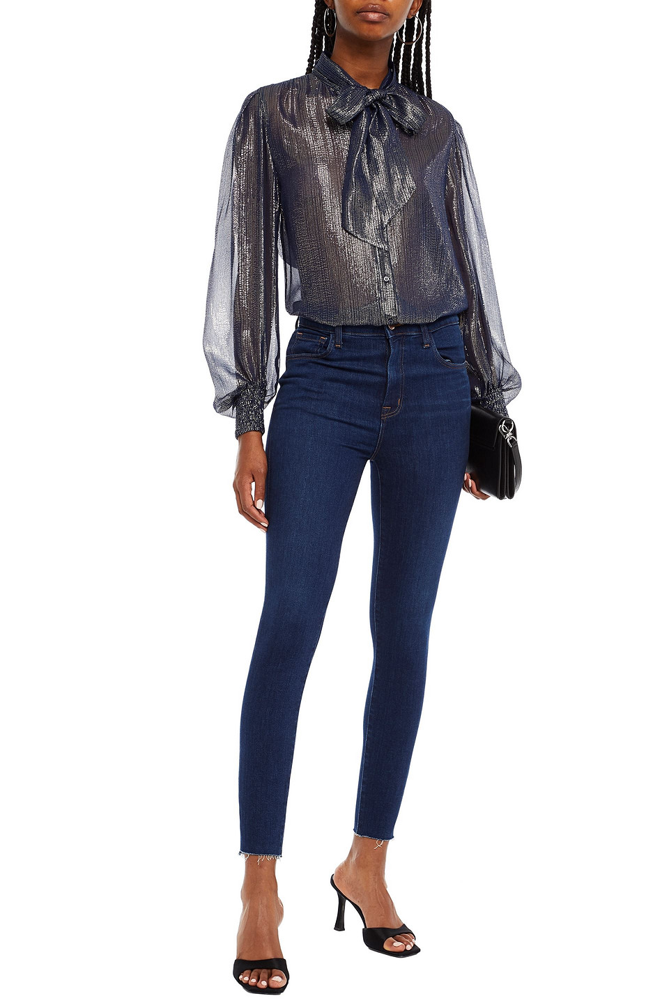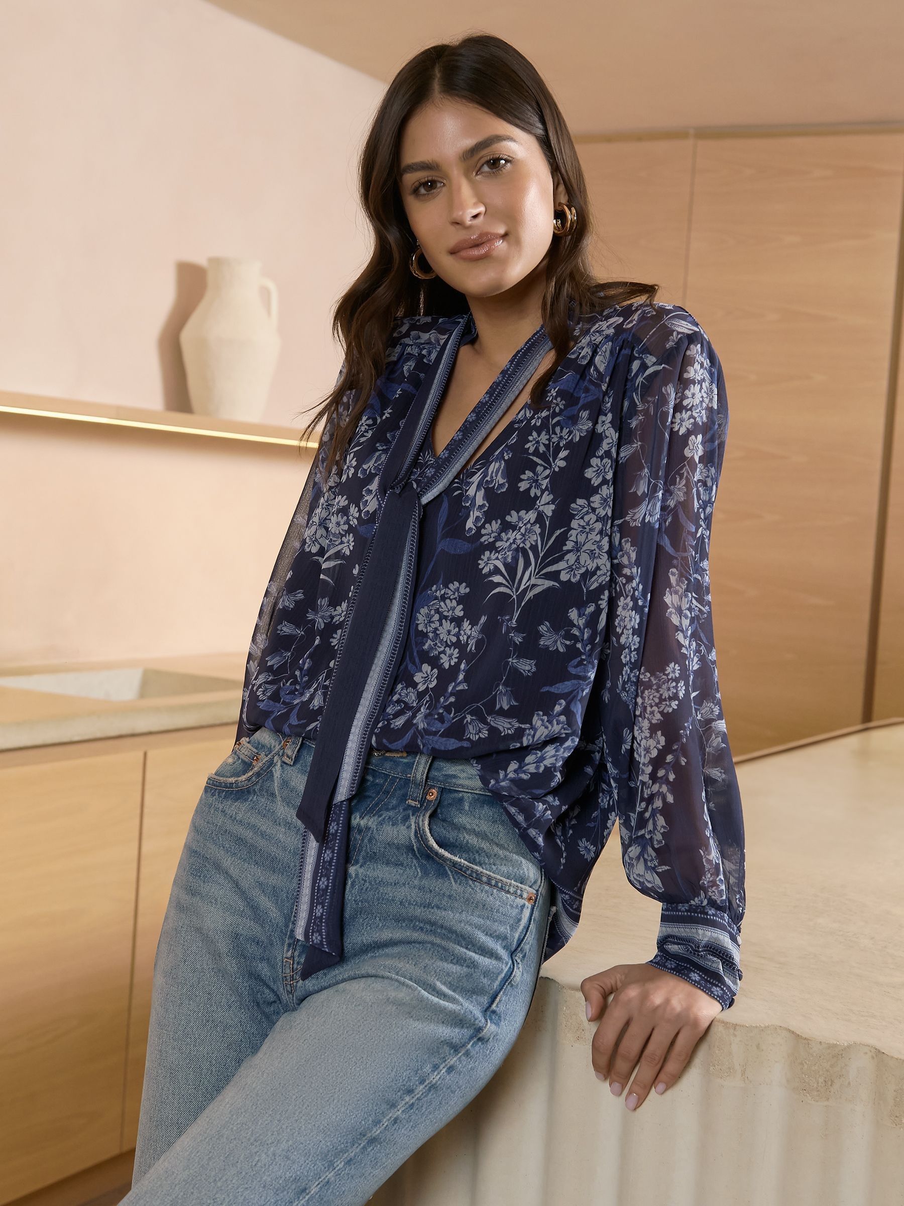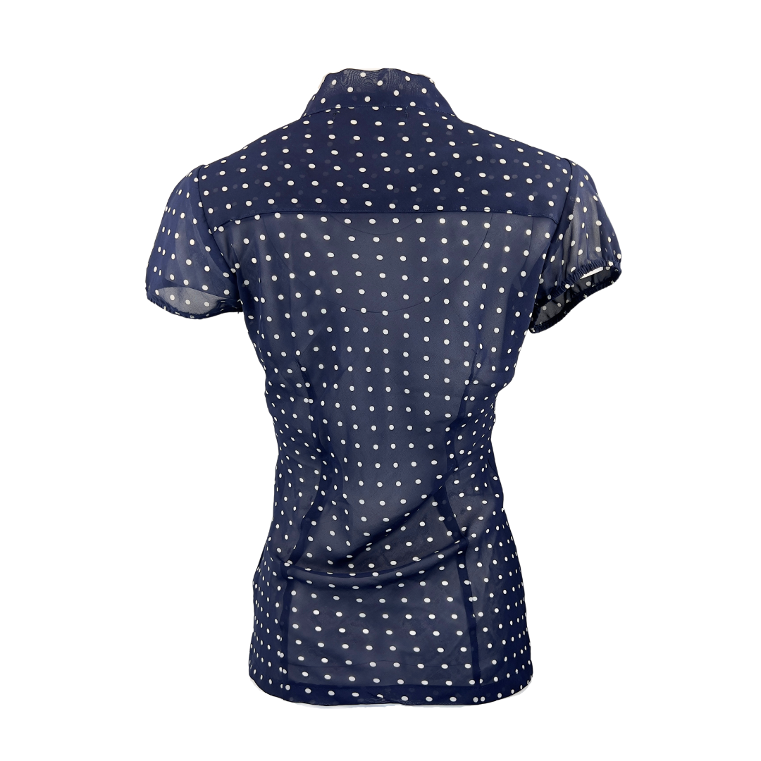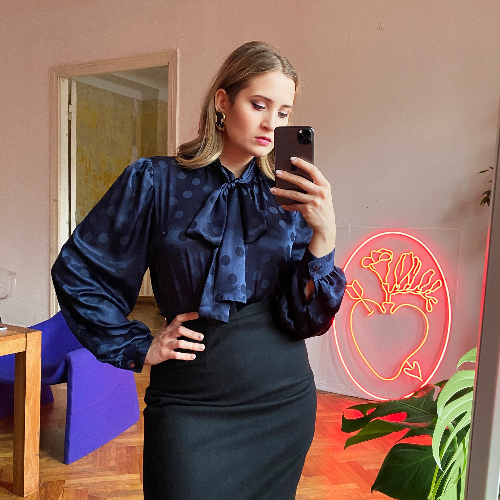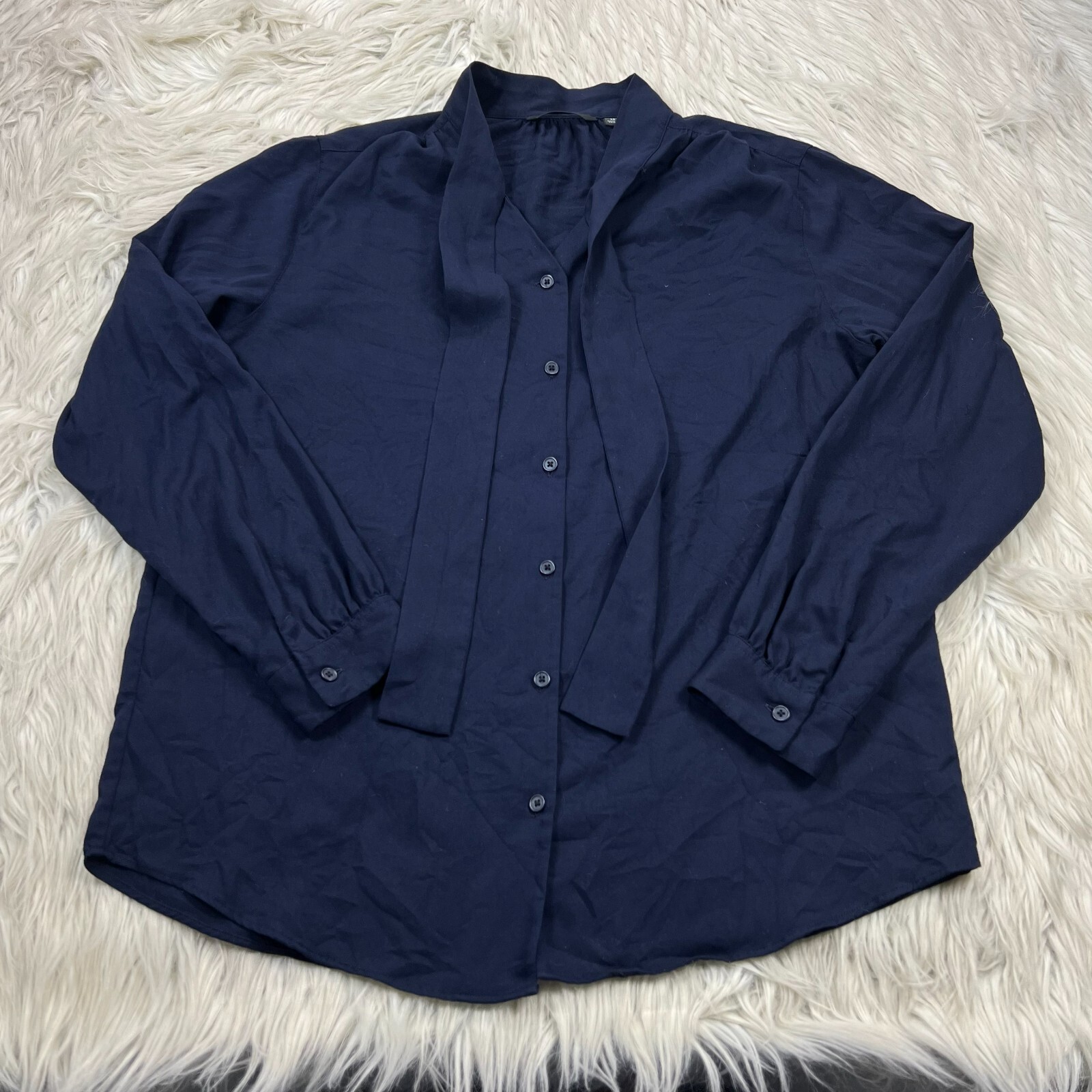 navy pussy bow blouse