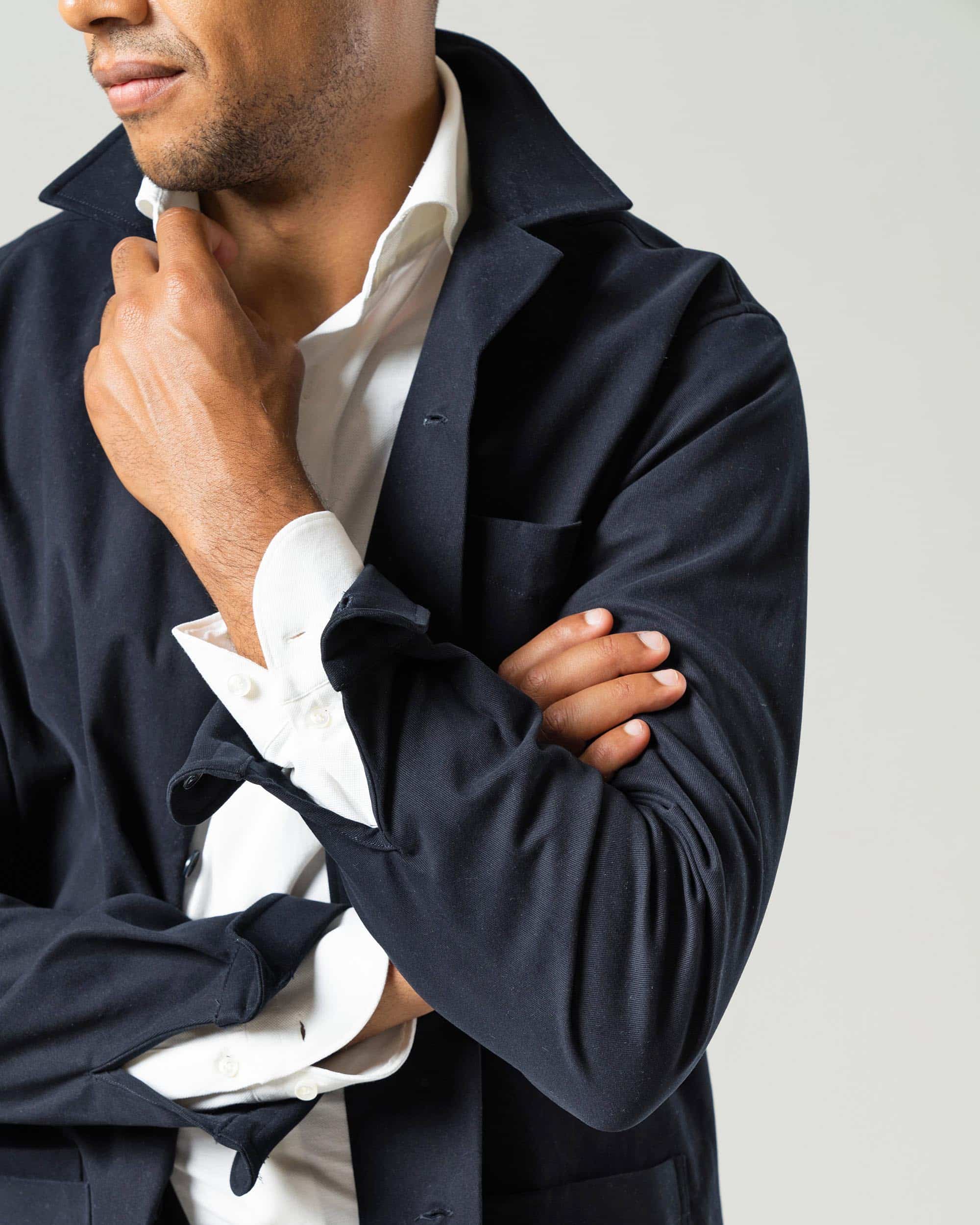 navy shirt and jacket