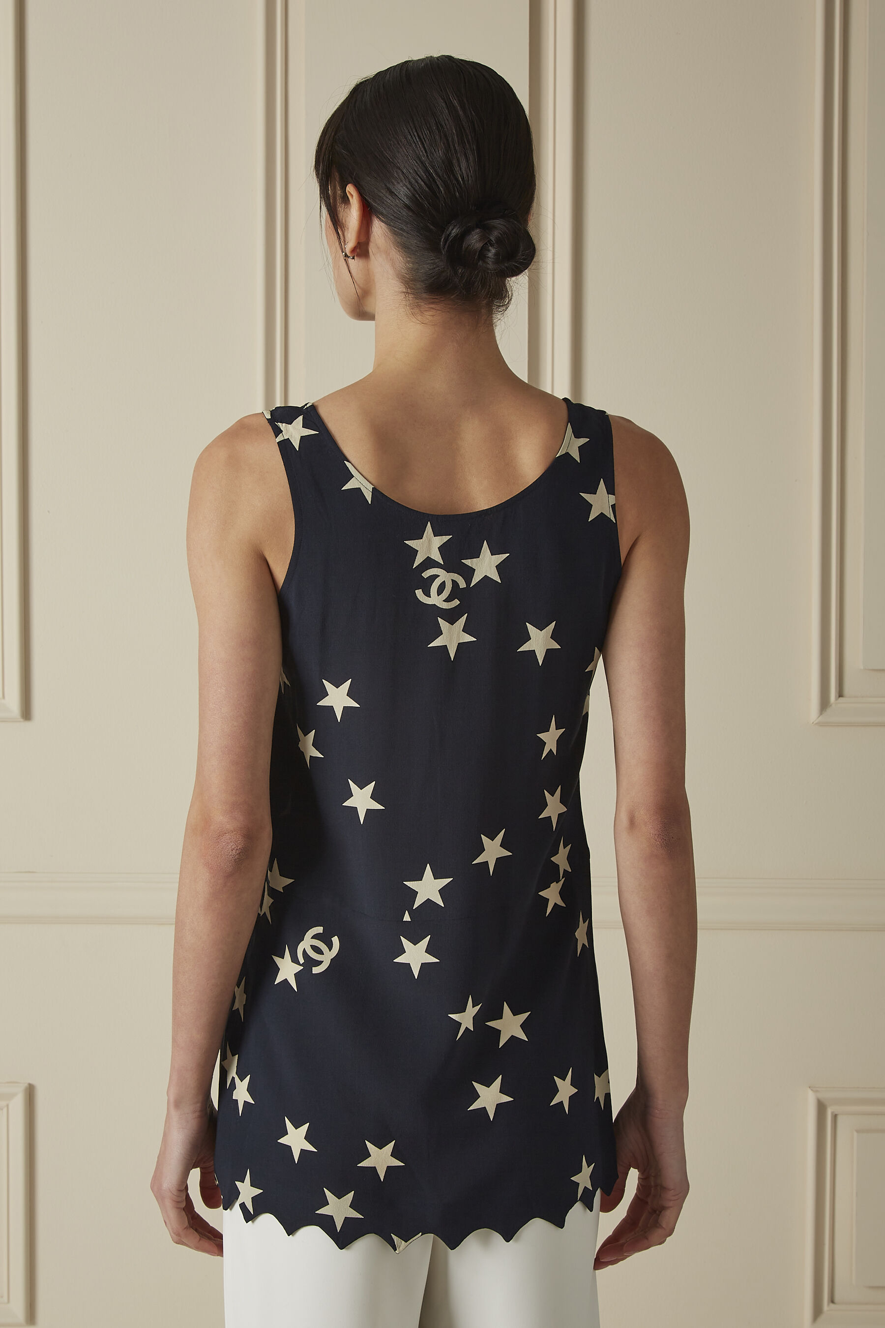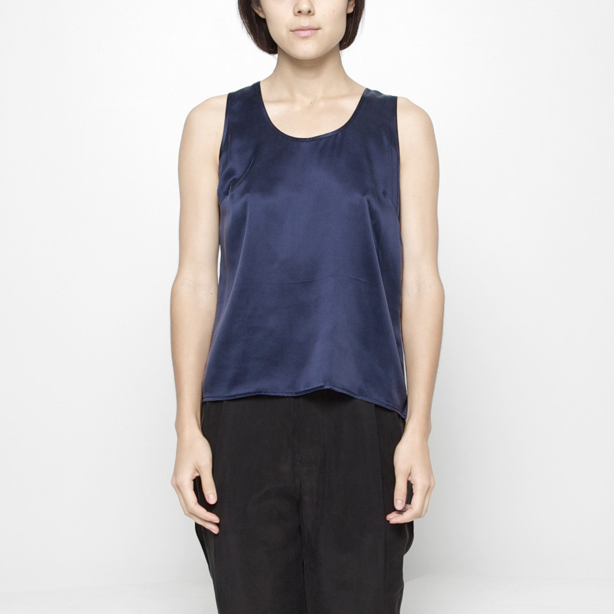 navy silk tank