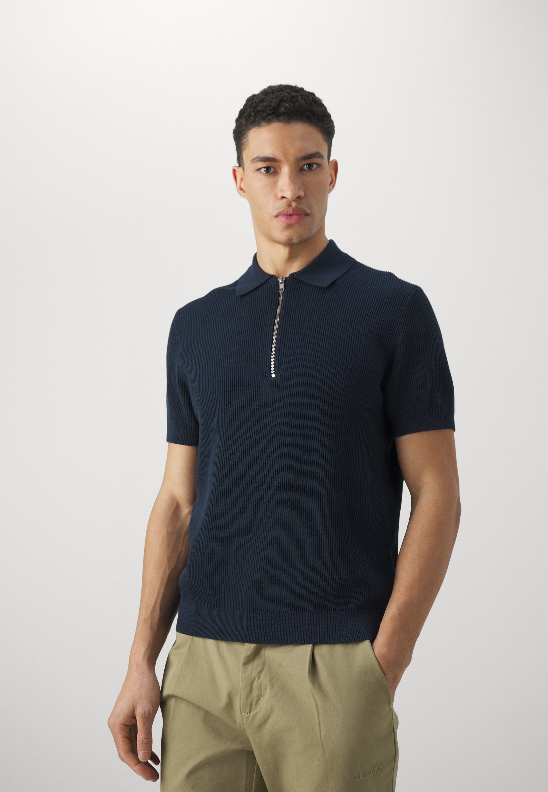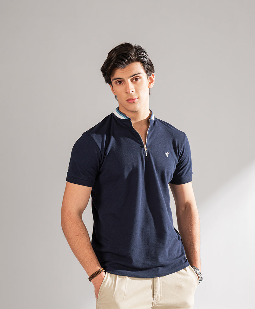 navy zip polo