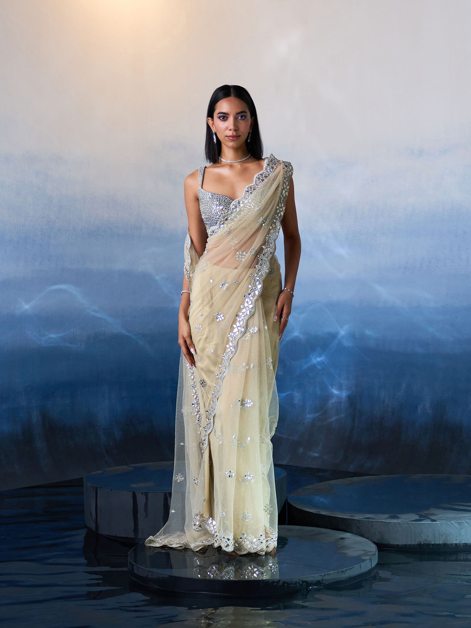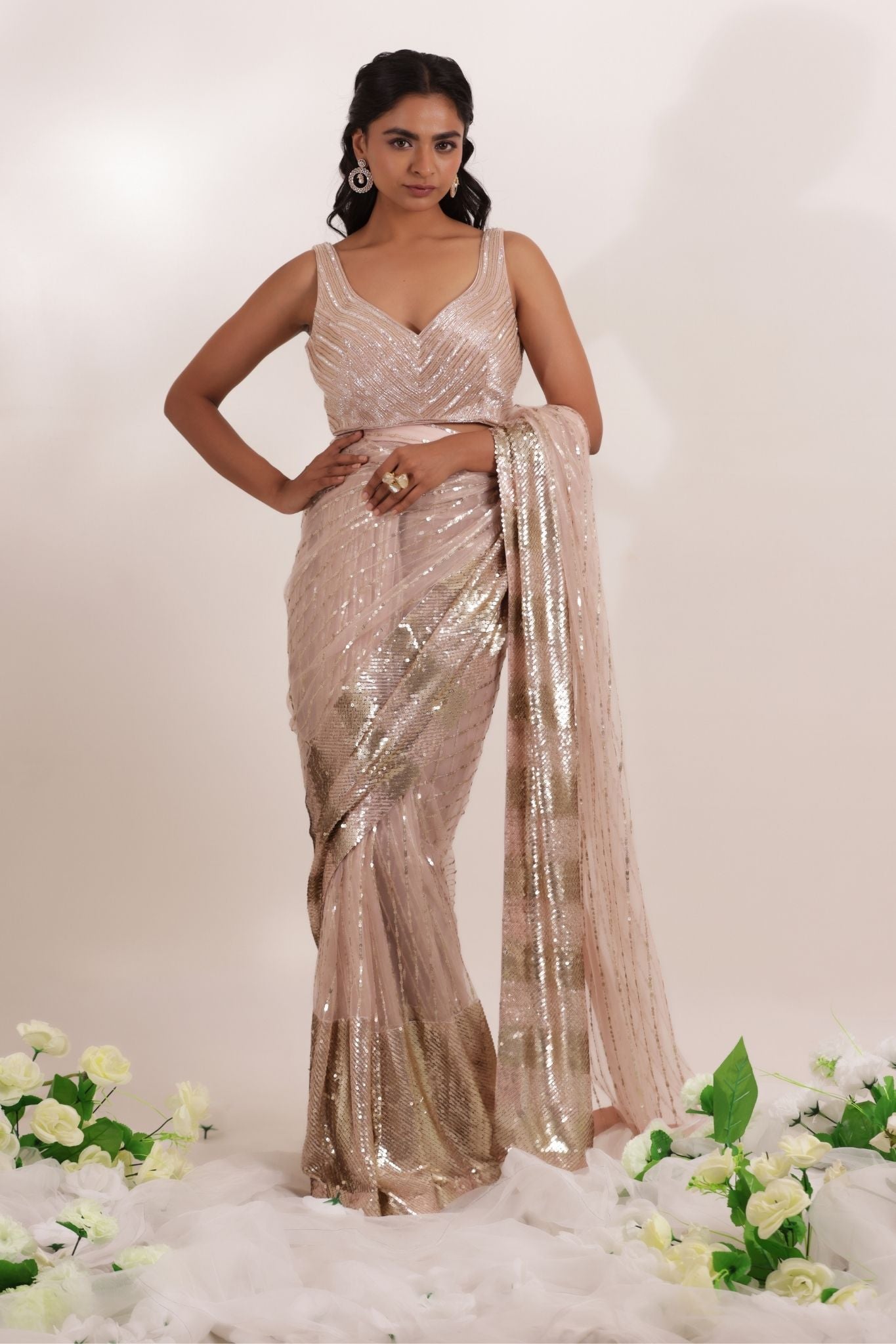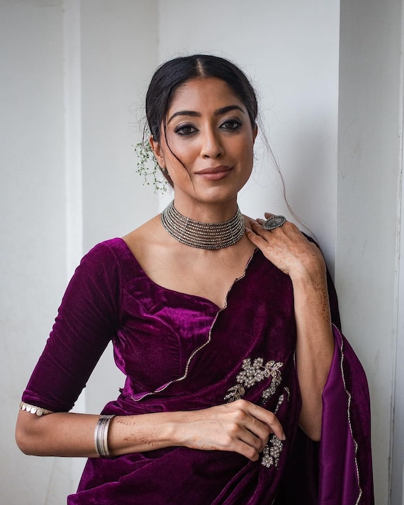 net saree with readymade blouse