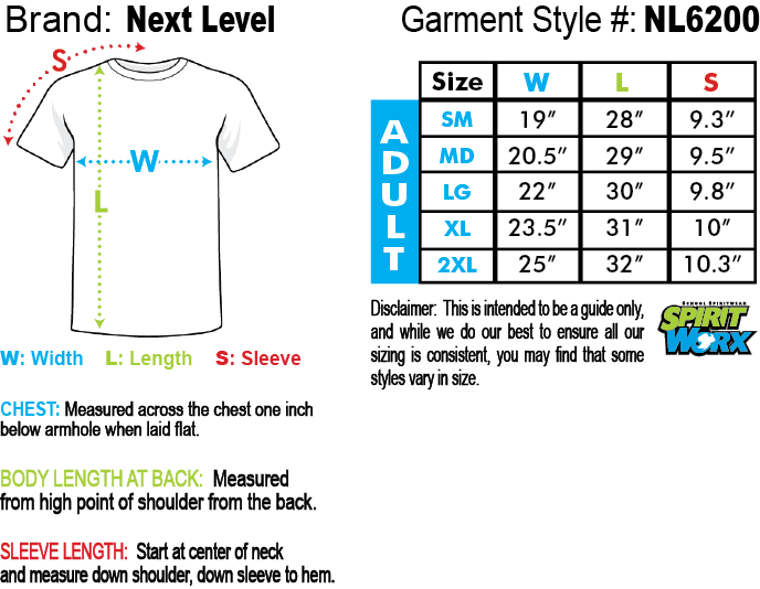 next level tee size chart