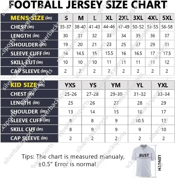 nfl authentic jersey size chart