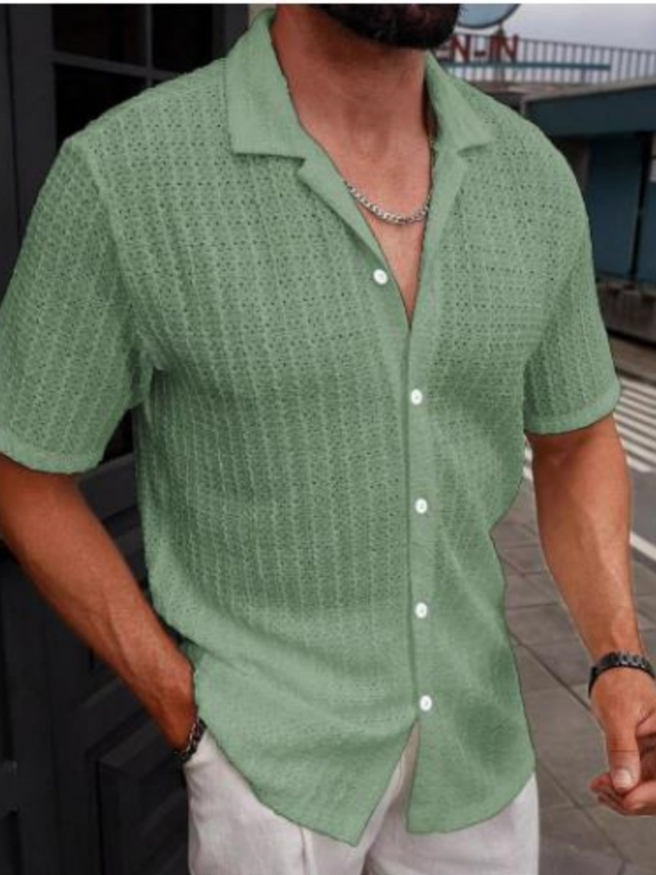 no collar button down shirt