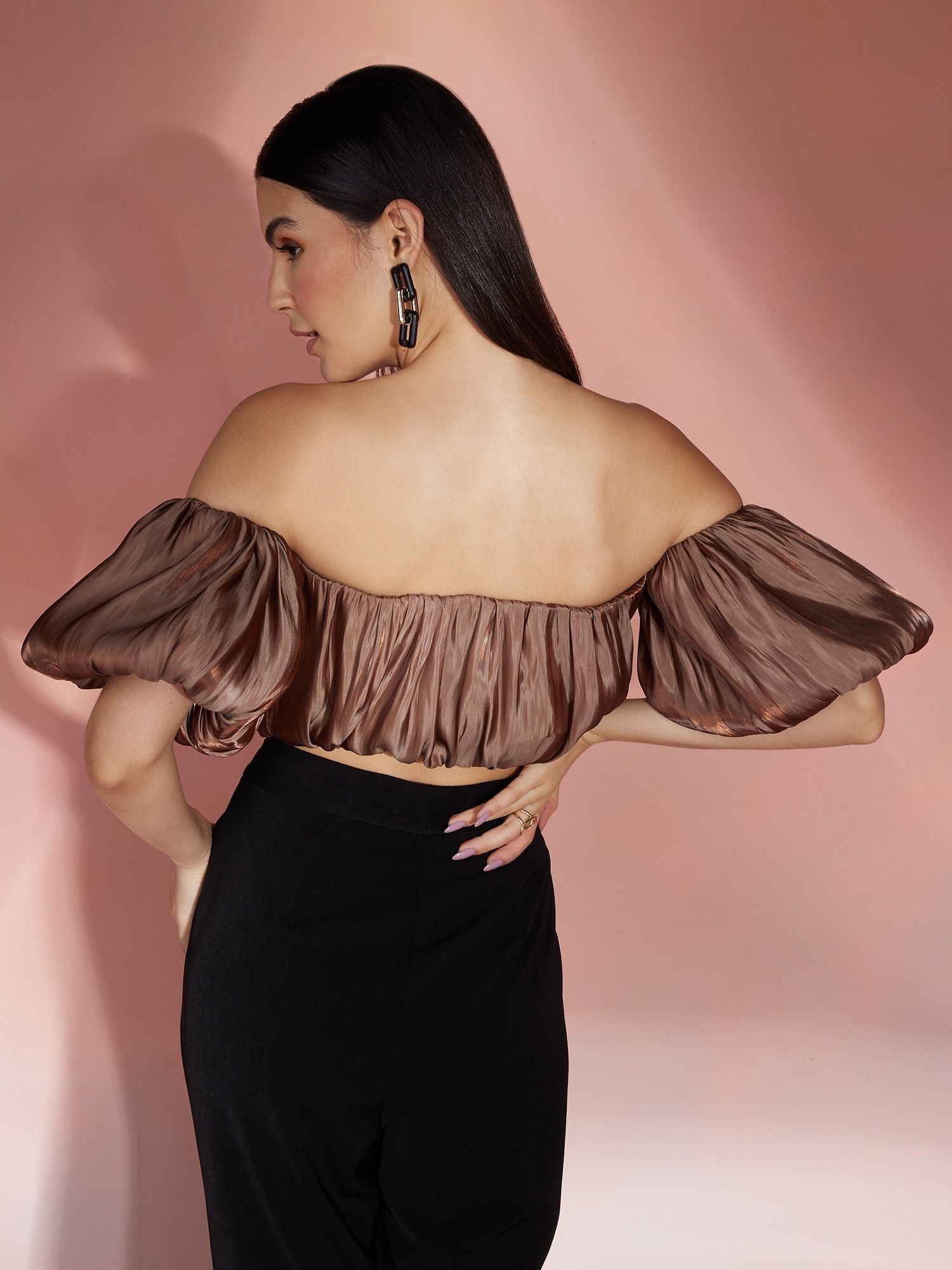 off shoulder ruched crop top