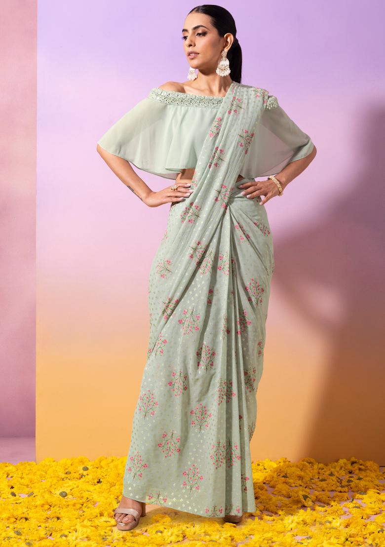 off shoulder top with saree