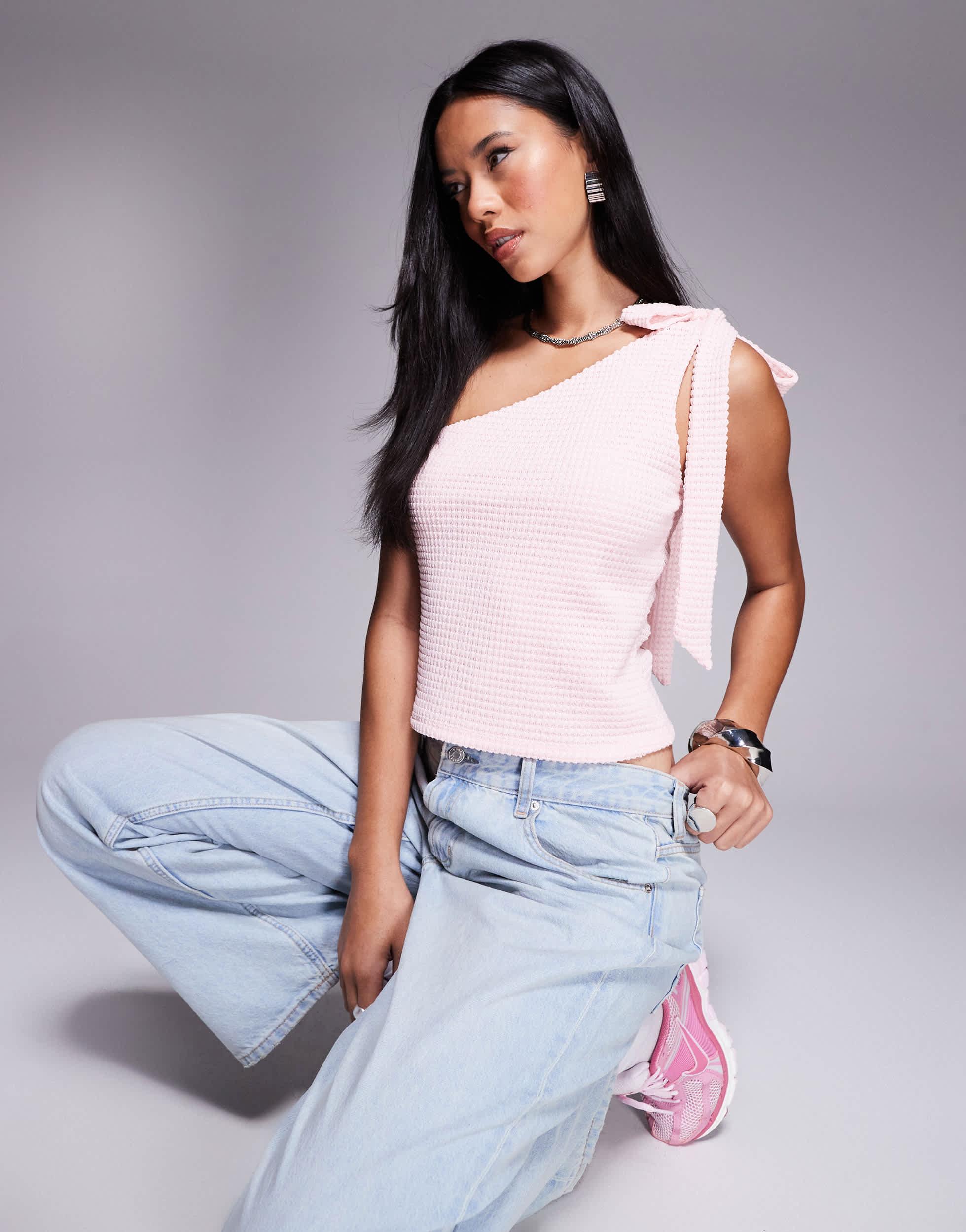 one shoulder bow top