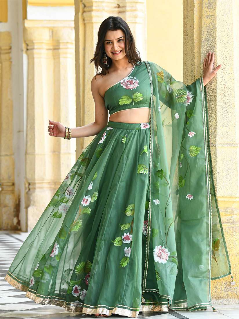 one shoulder lehenga blouse