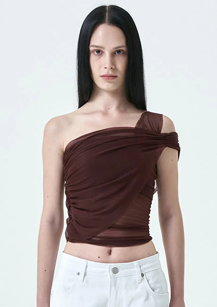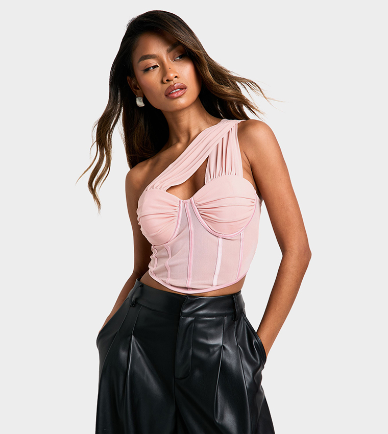 one shoulder mesh top