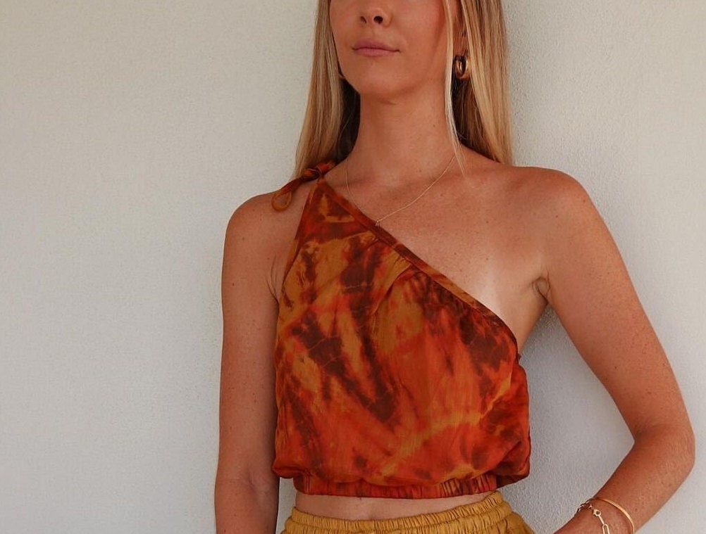 one shoulder tie dye top