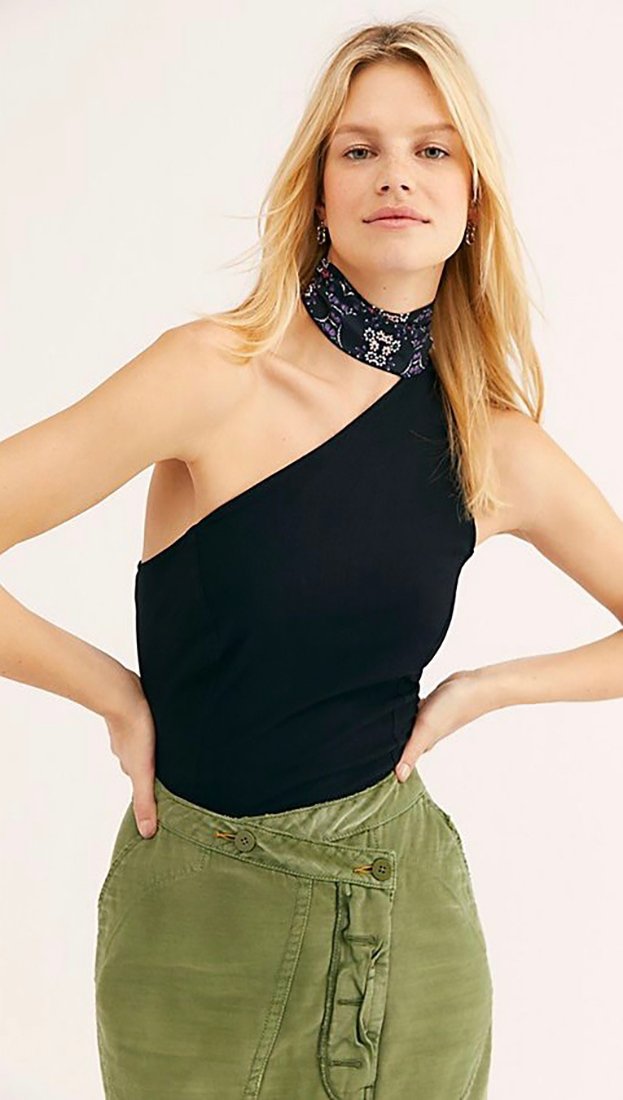 one shoulder tie tank top