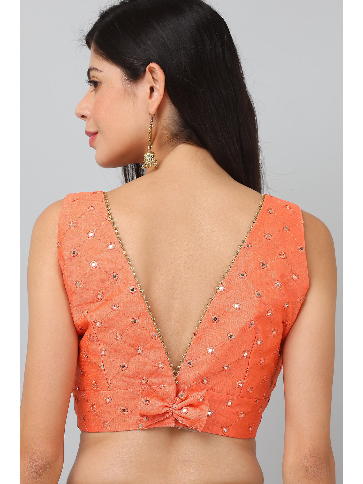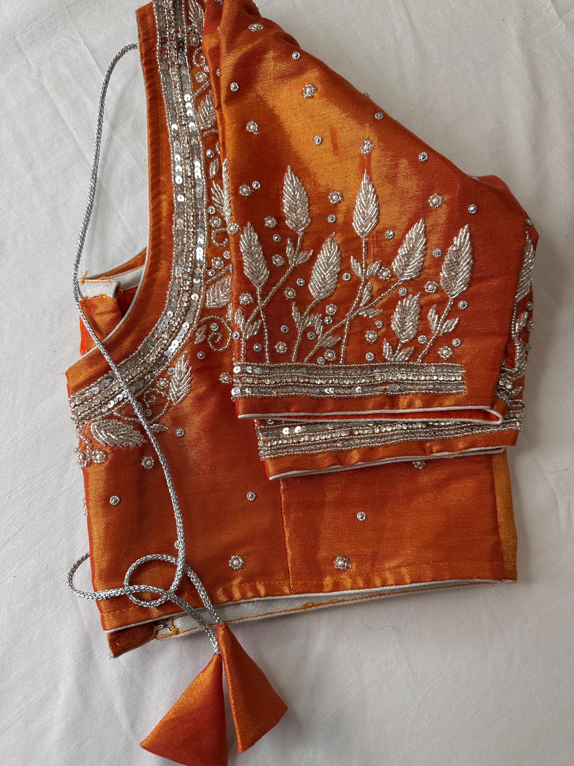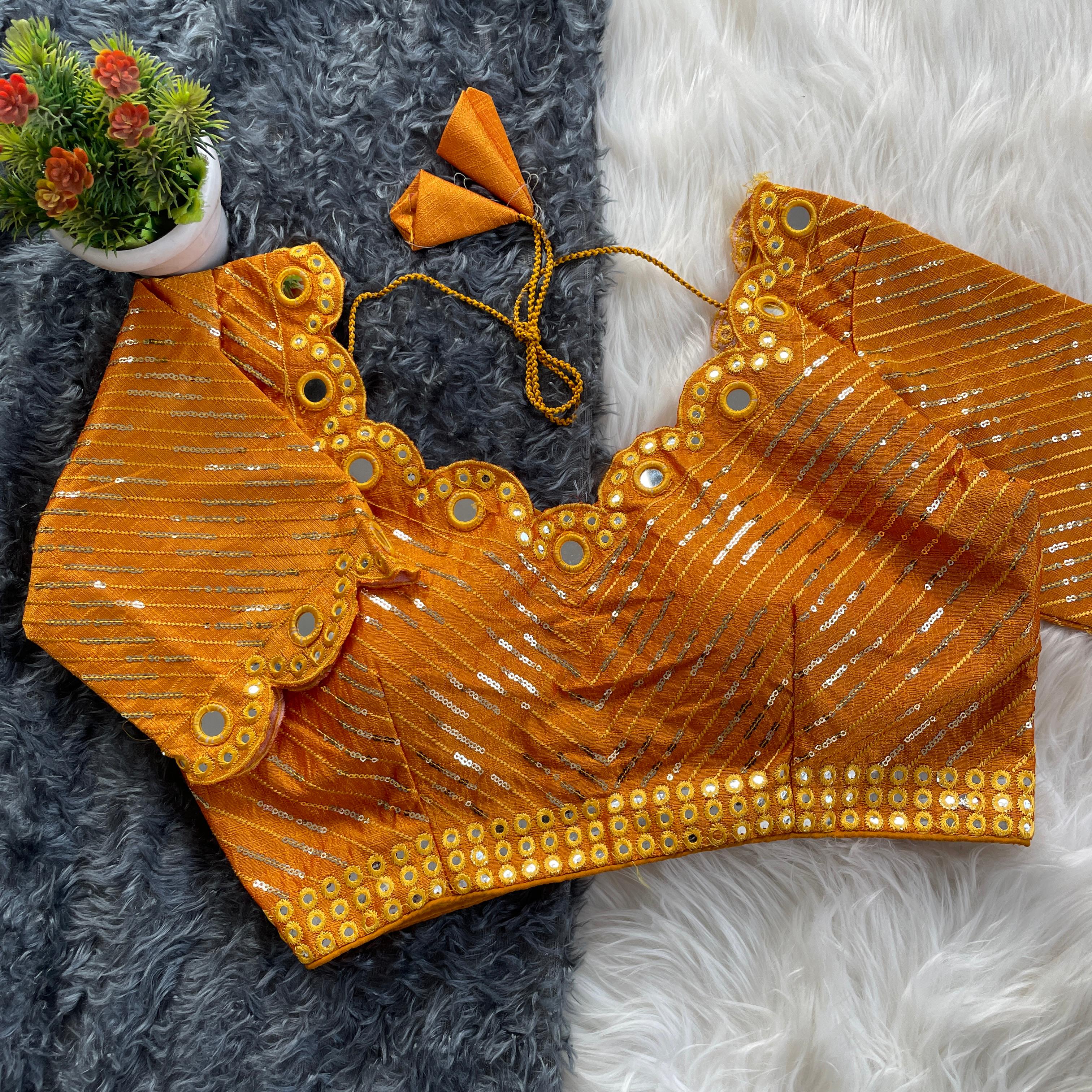 orange mirror work blouse