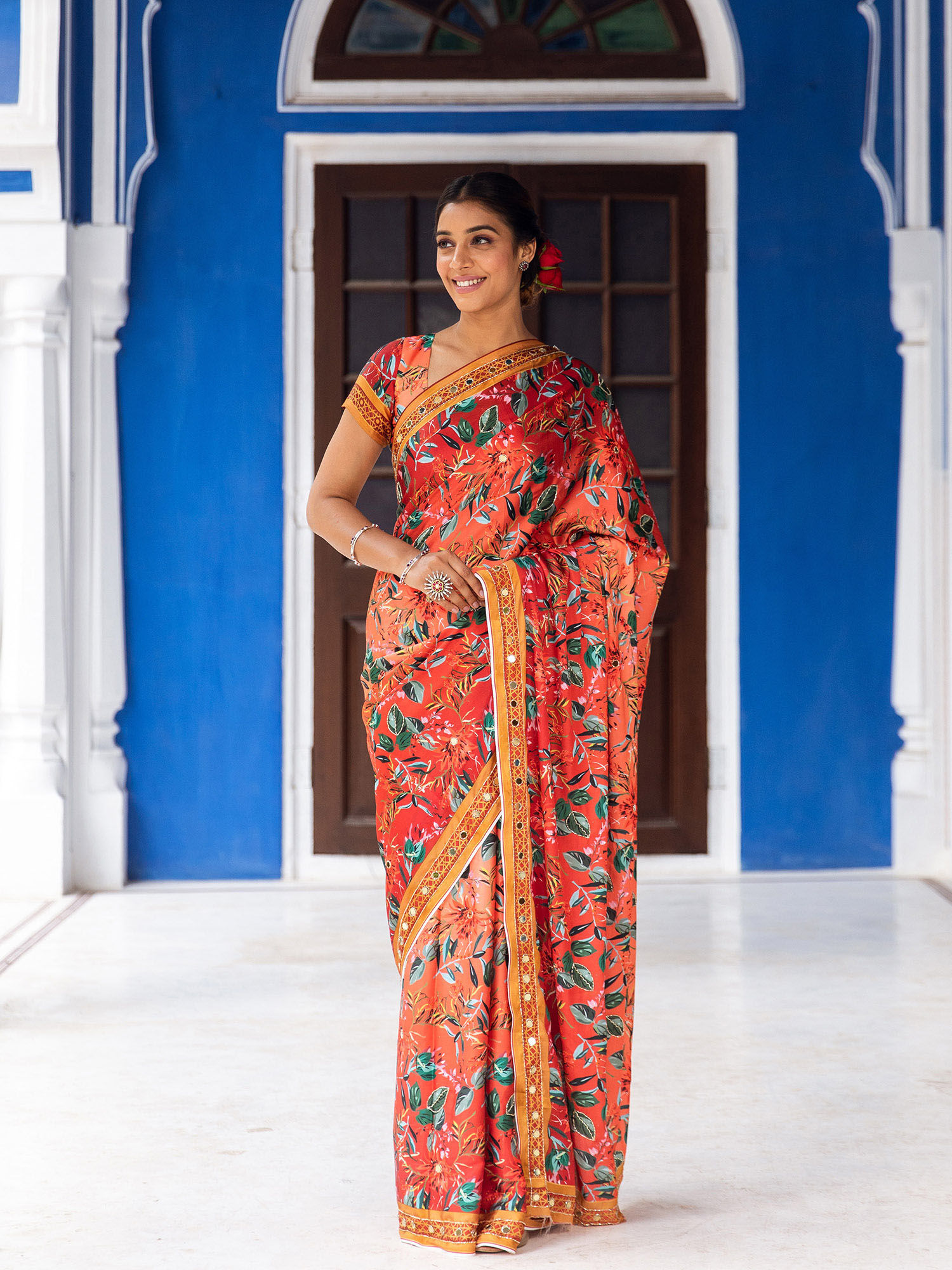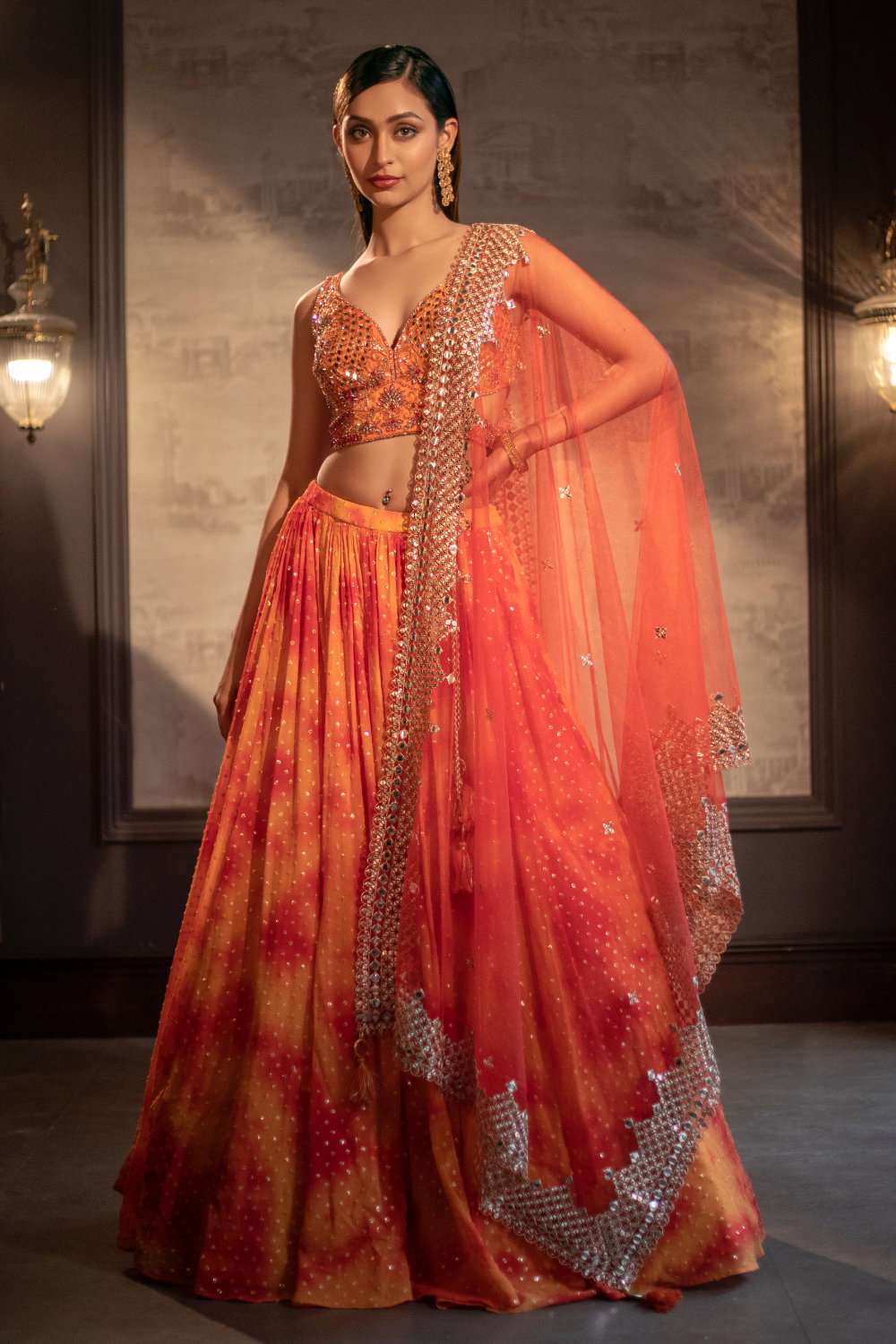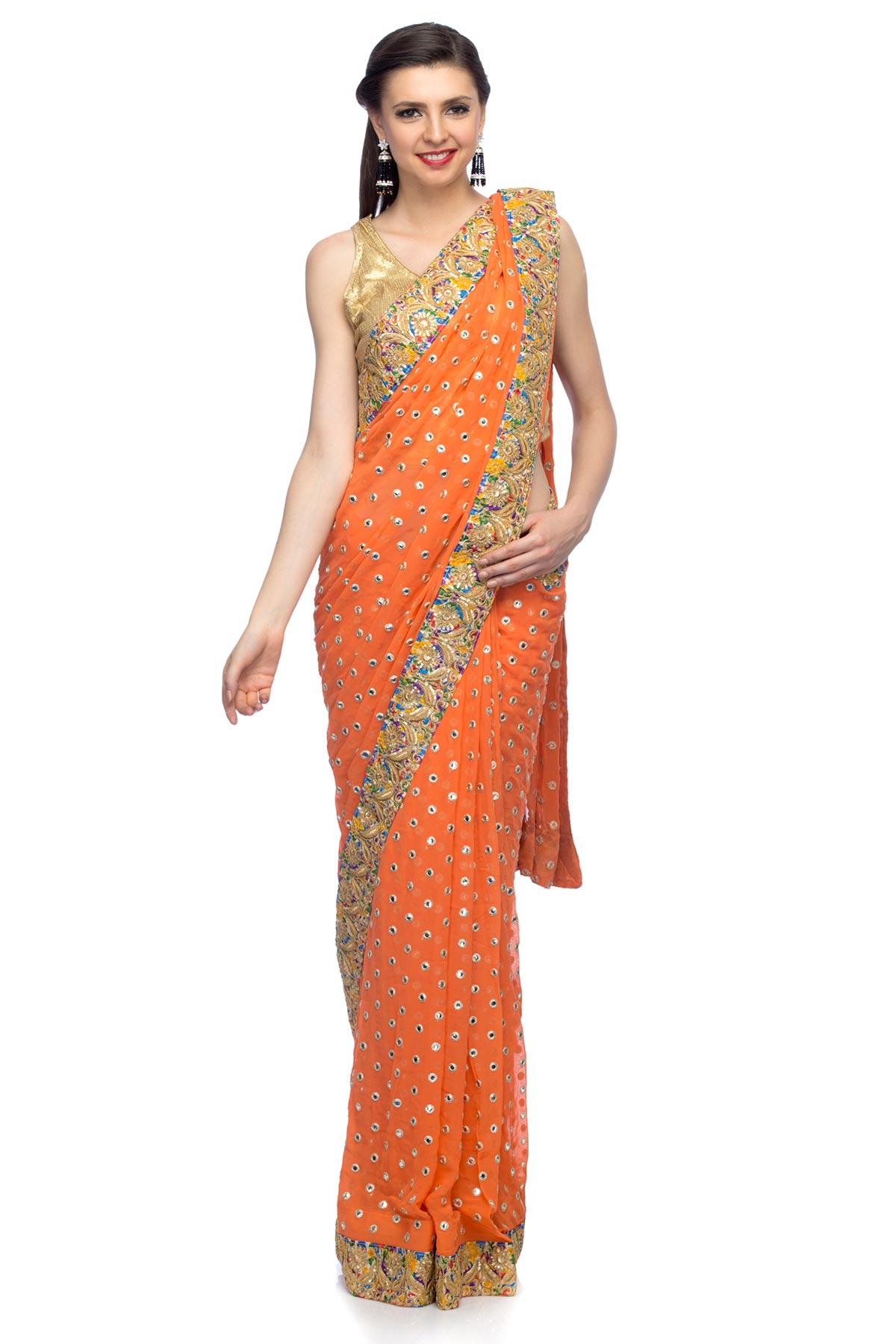 orange mirror work blouse