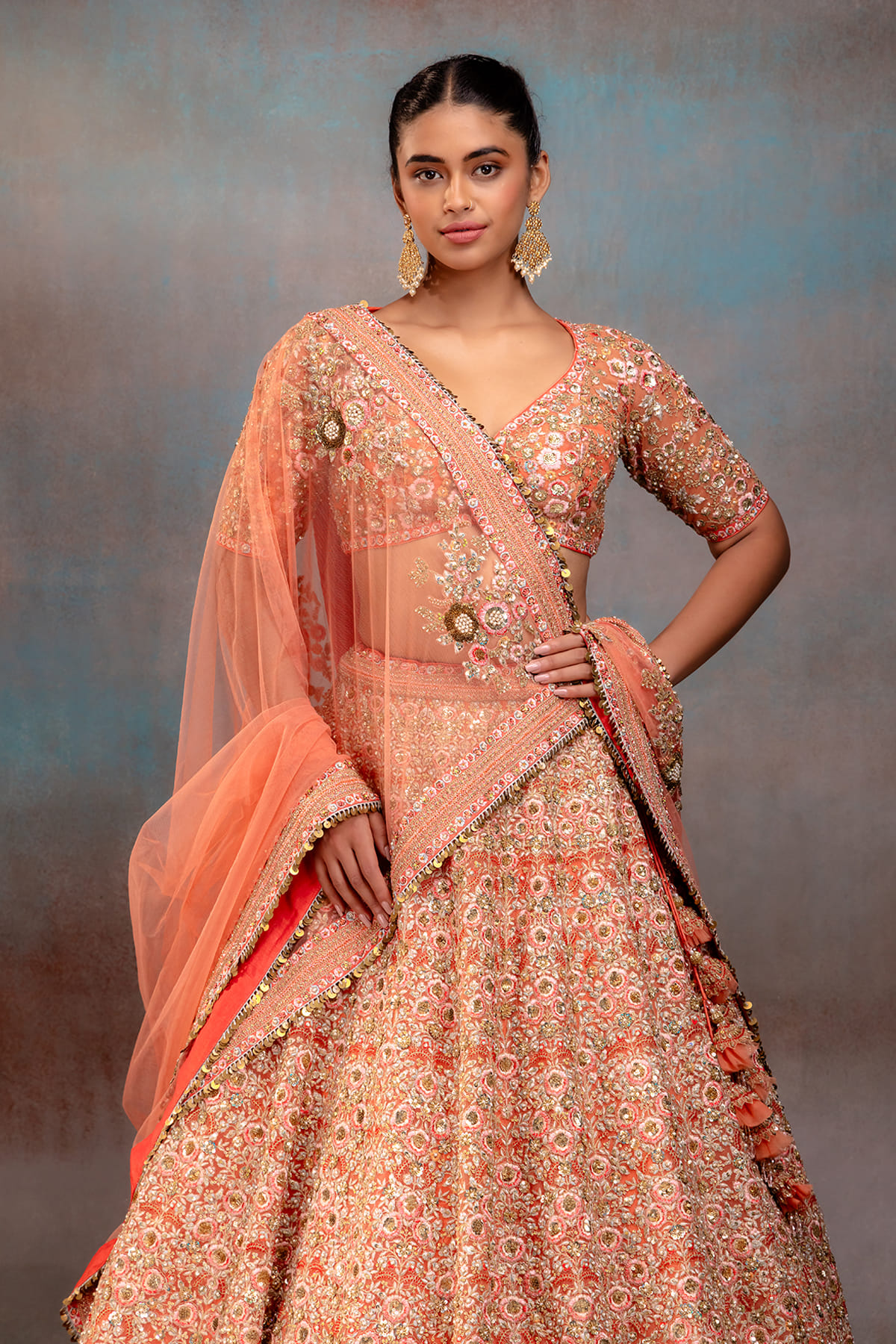 orange net blouse
