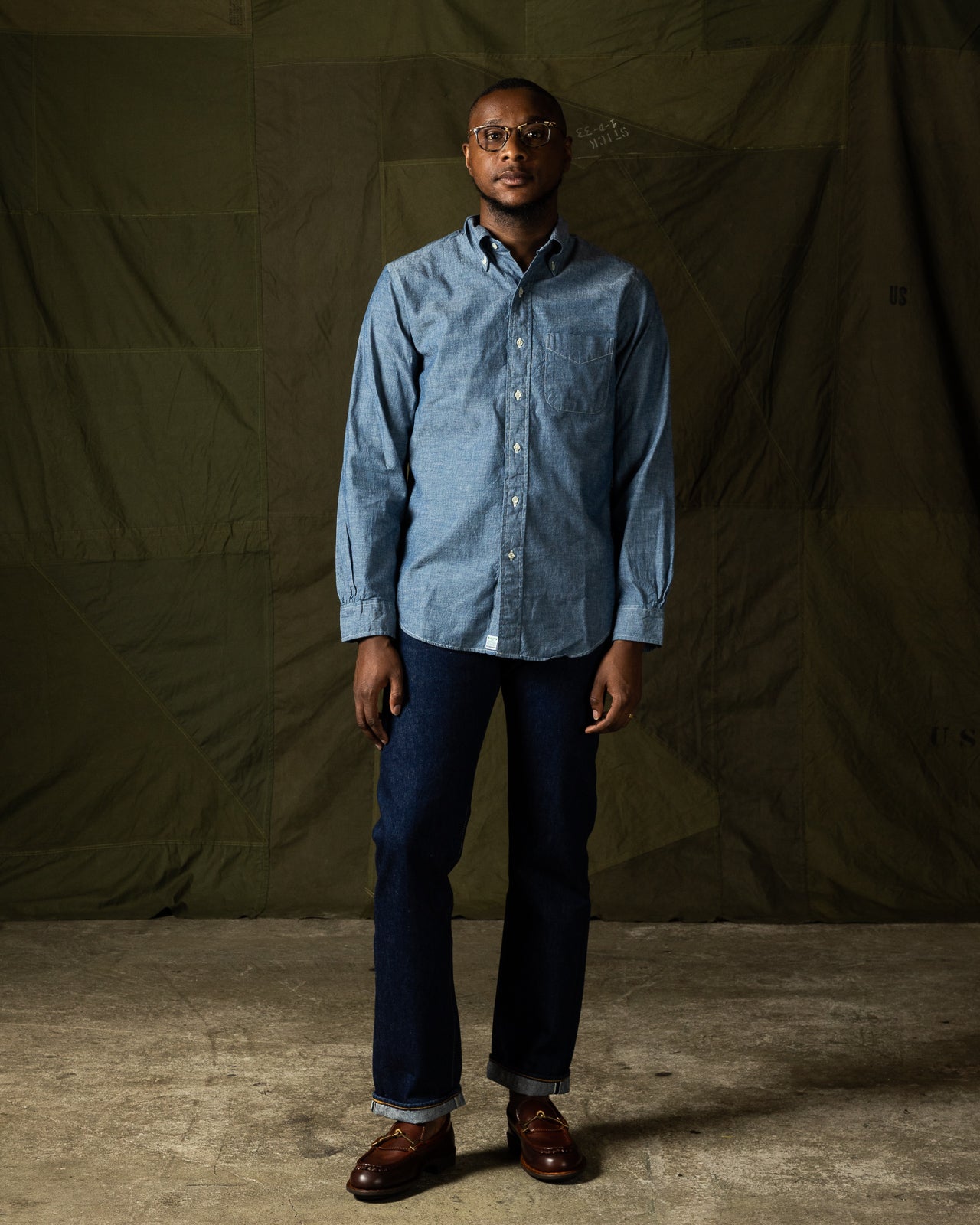 orslow button down denim shirt