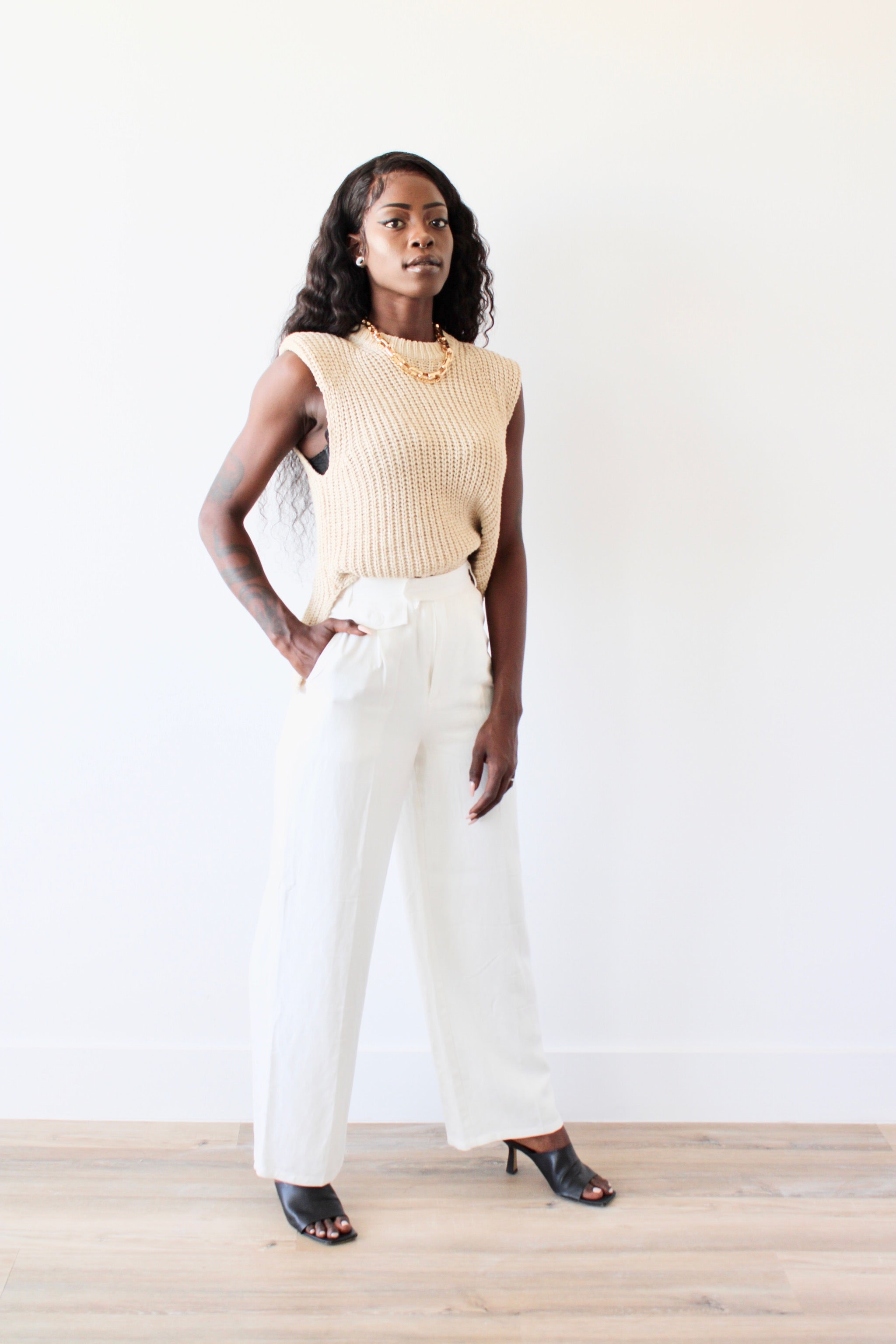 padded shoulder sleeveless top
