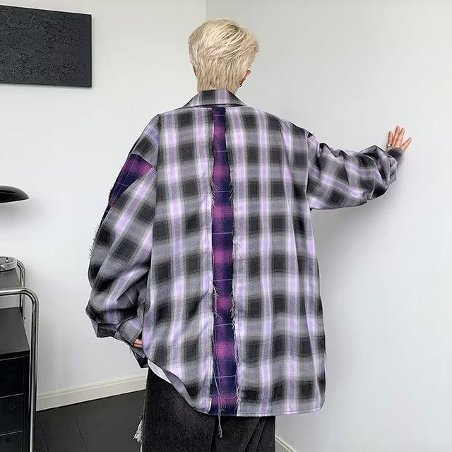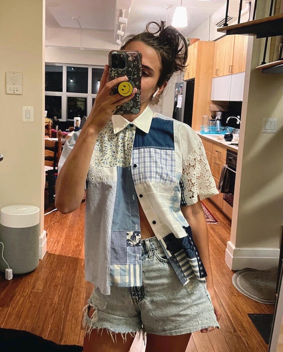 patchwork button up shirt