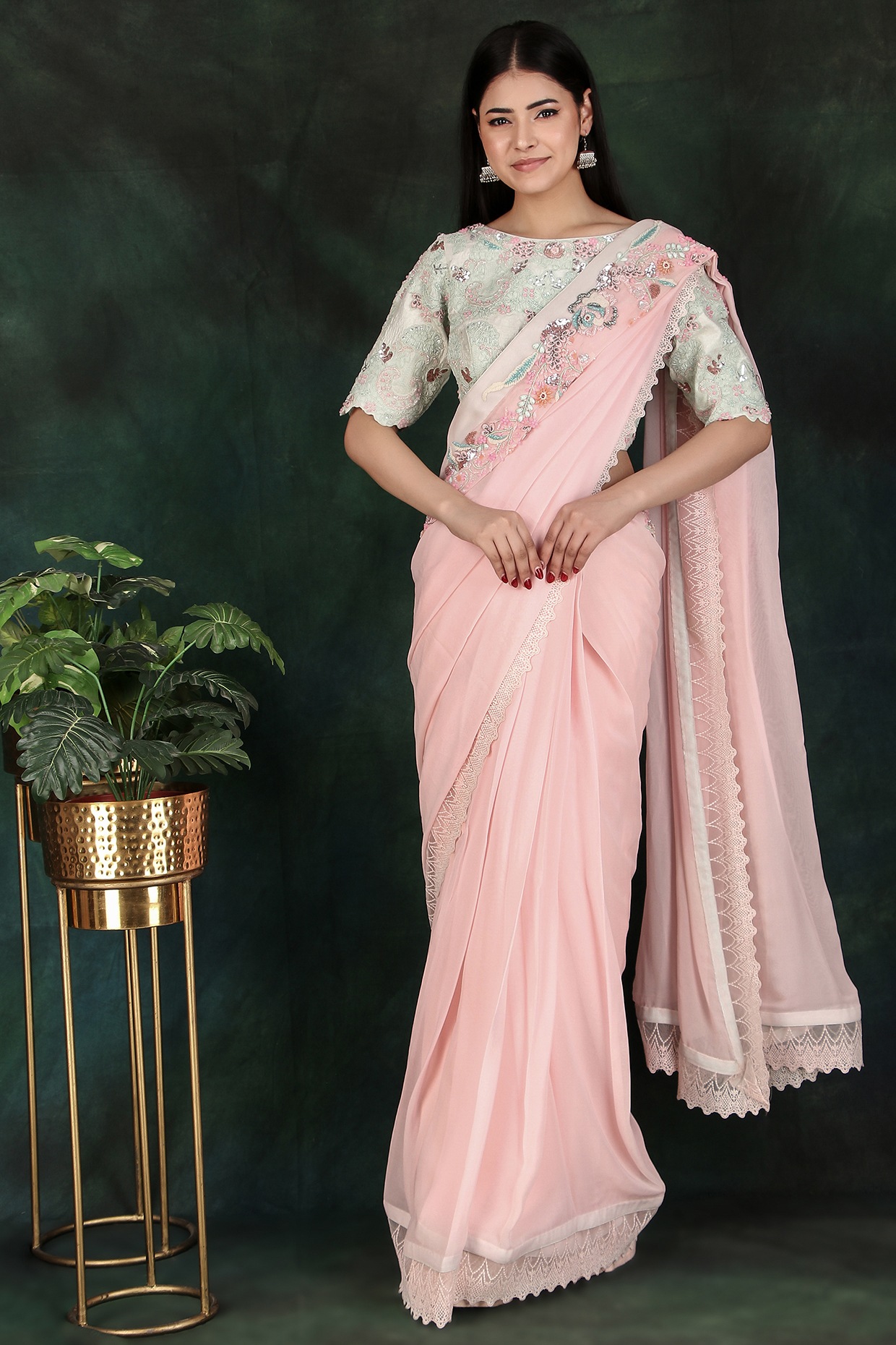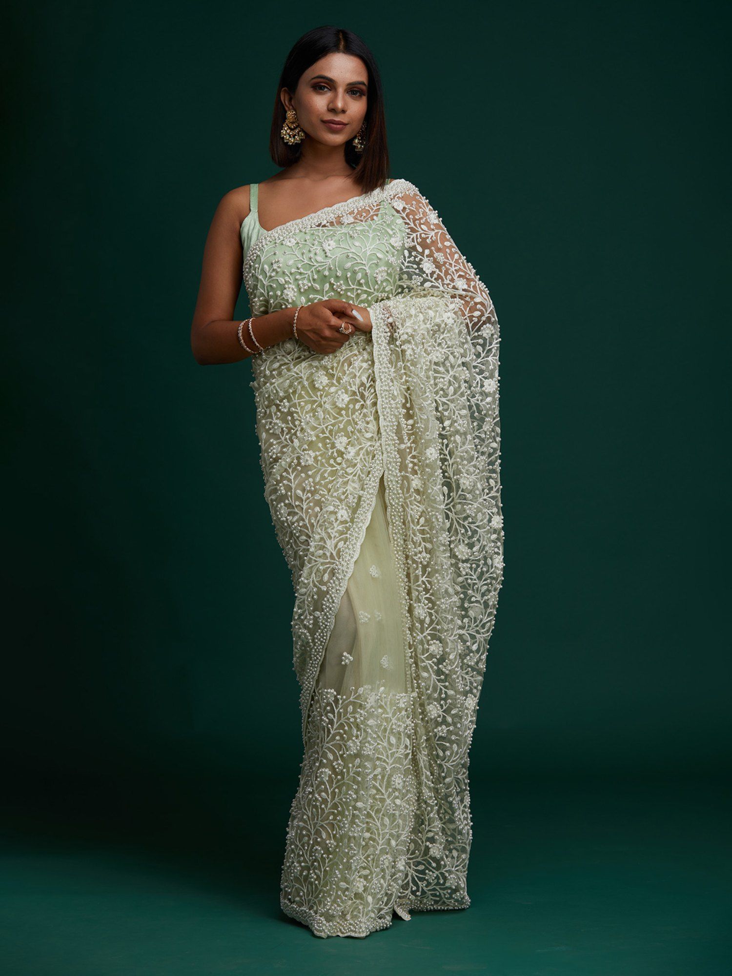 pearl work saree blouse