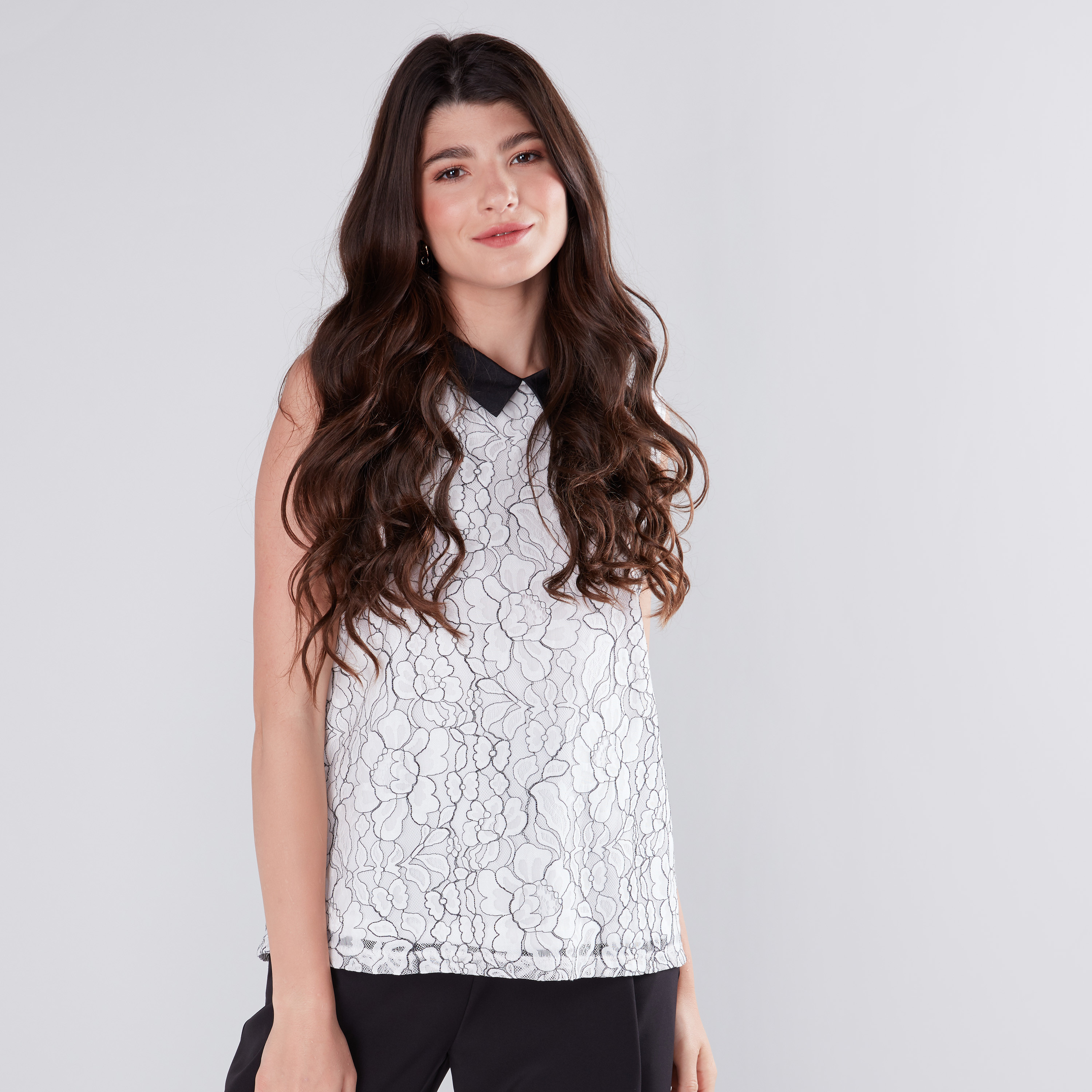peter pan collar sleeveless top