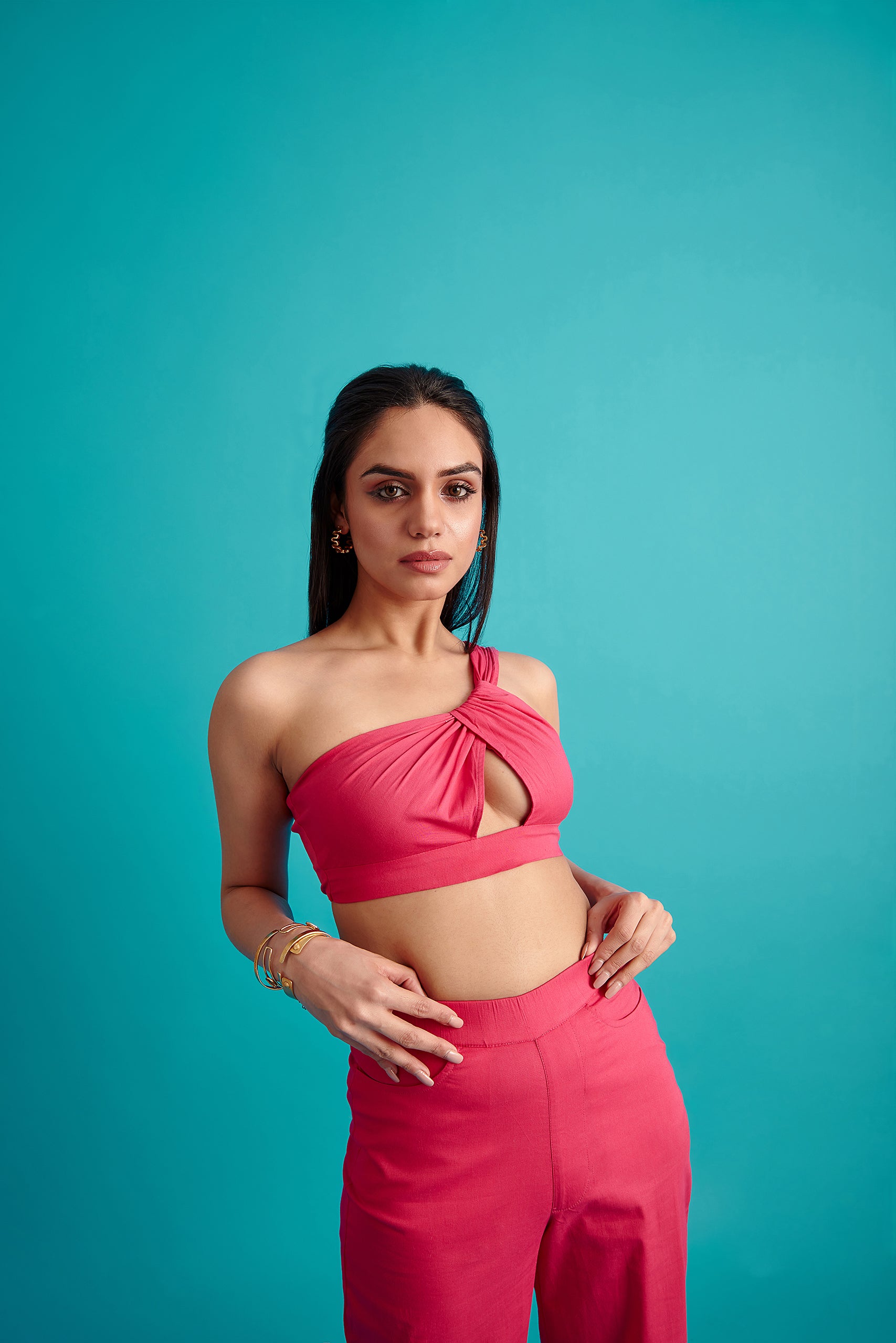 pink asymmetrical top