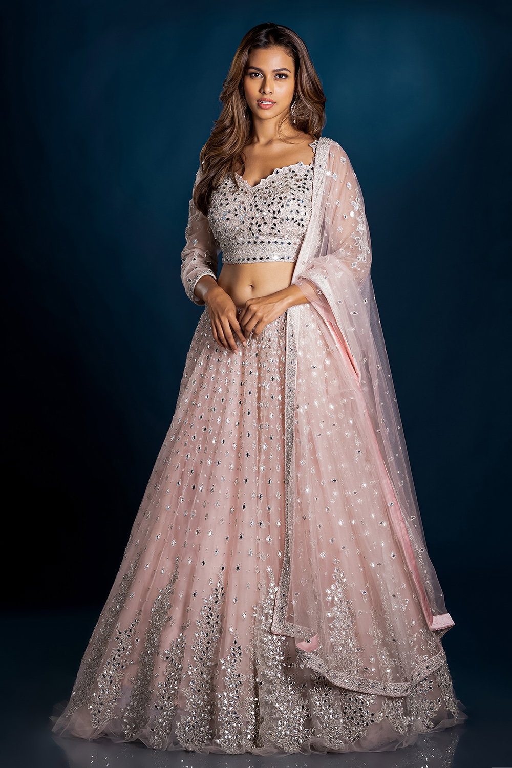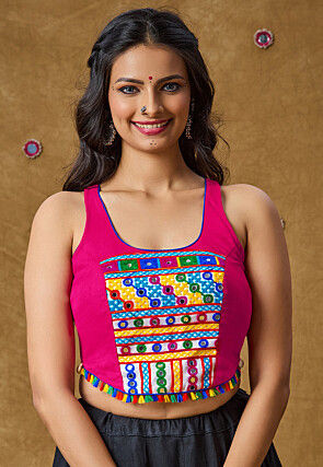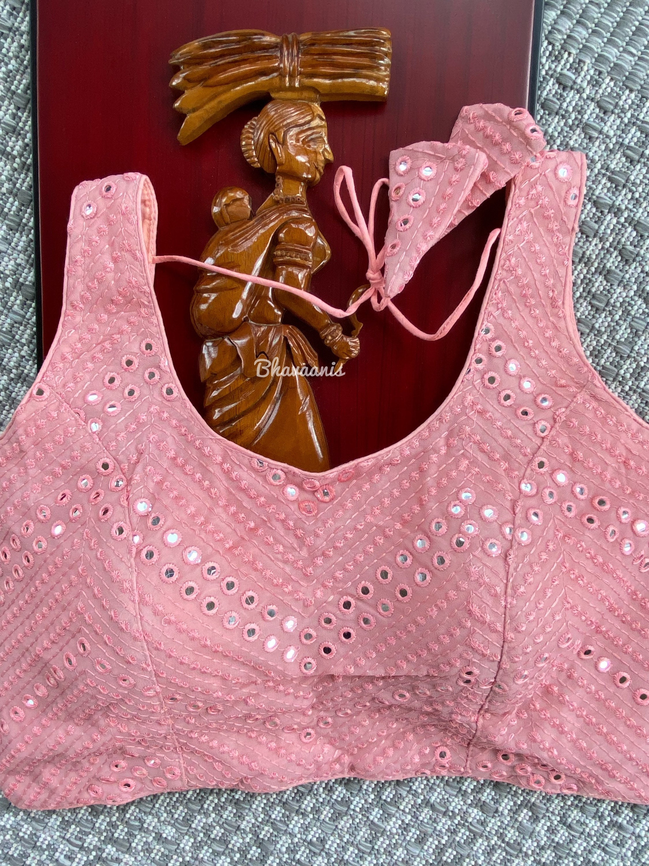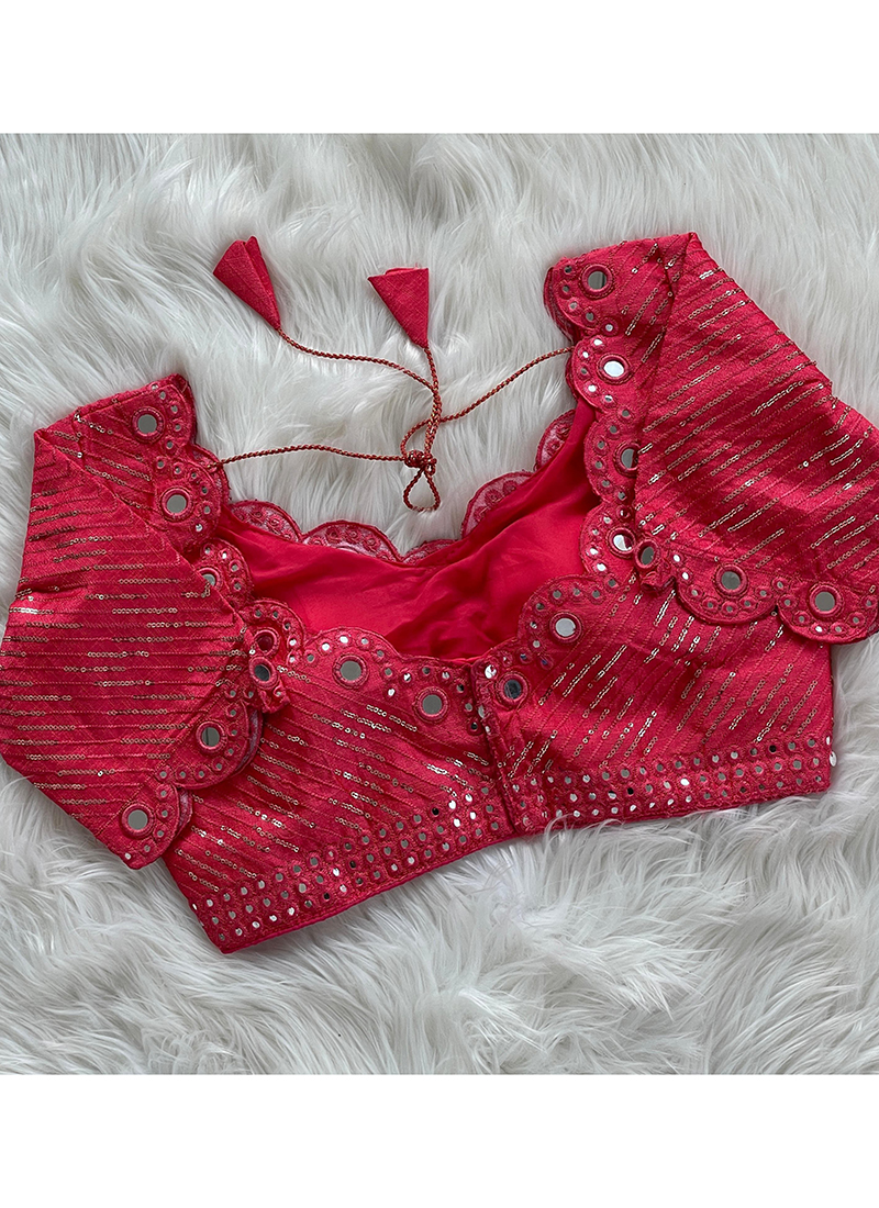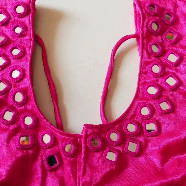 pink blouse mirror work