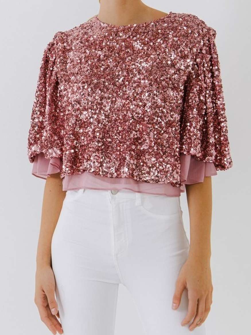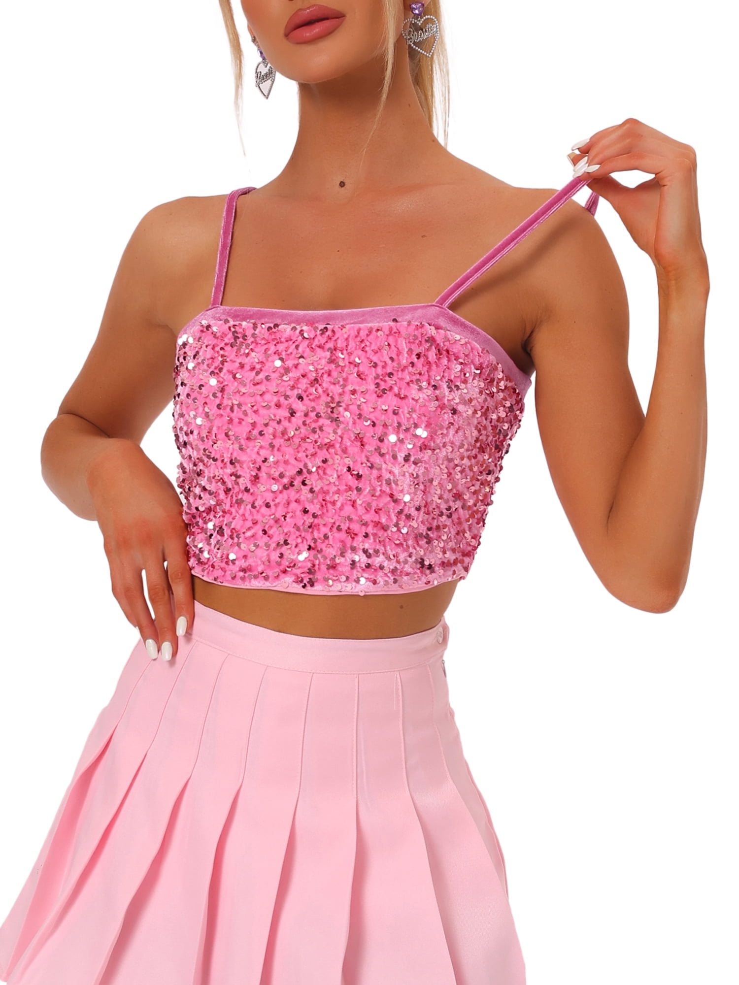 pink sequin crop top