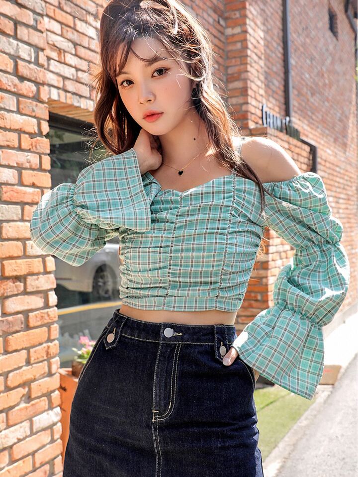 plaid cold shoulder top