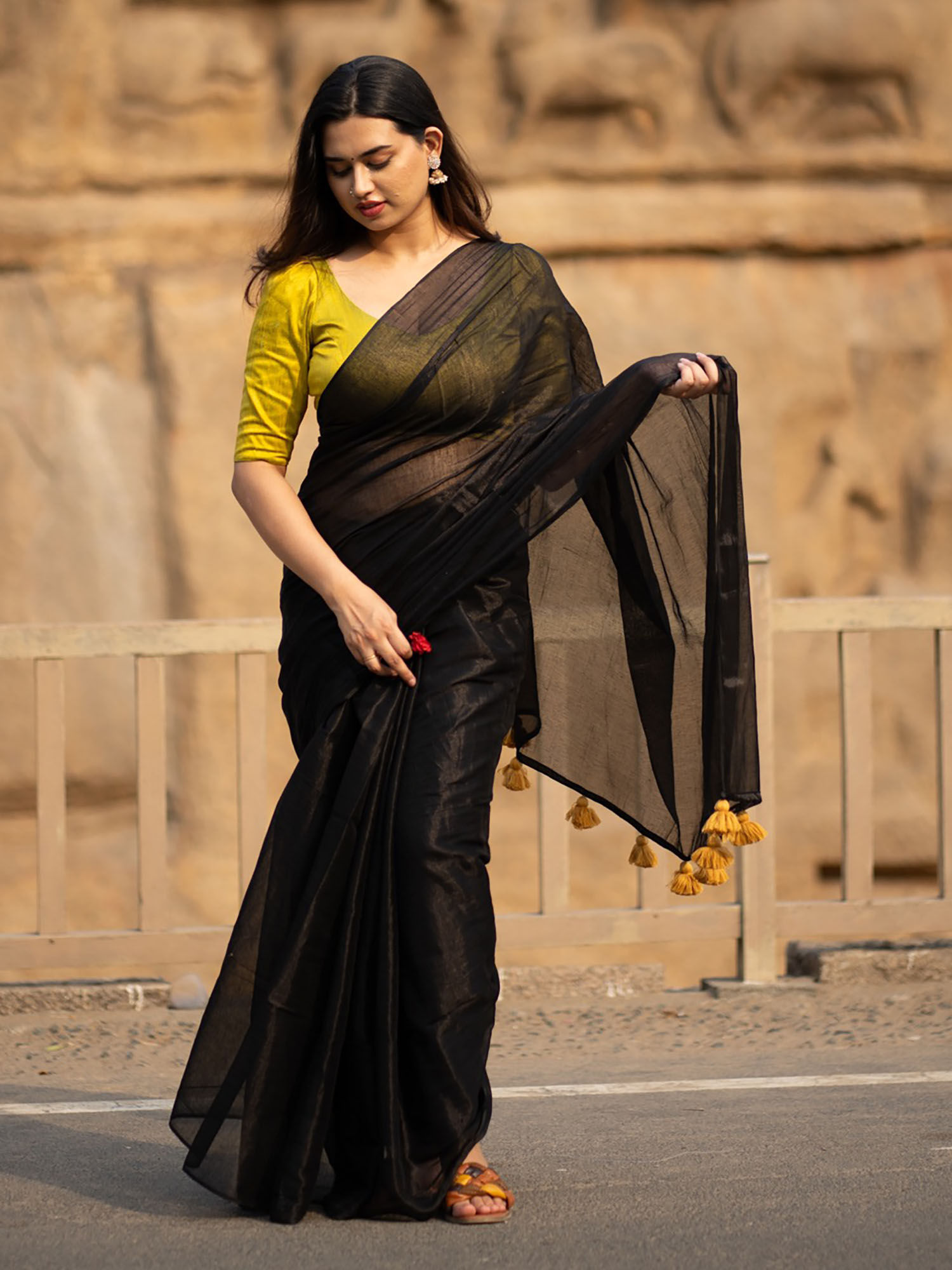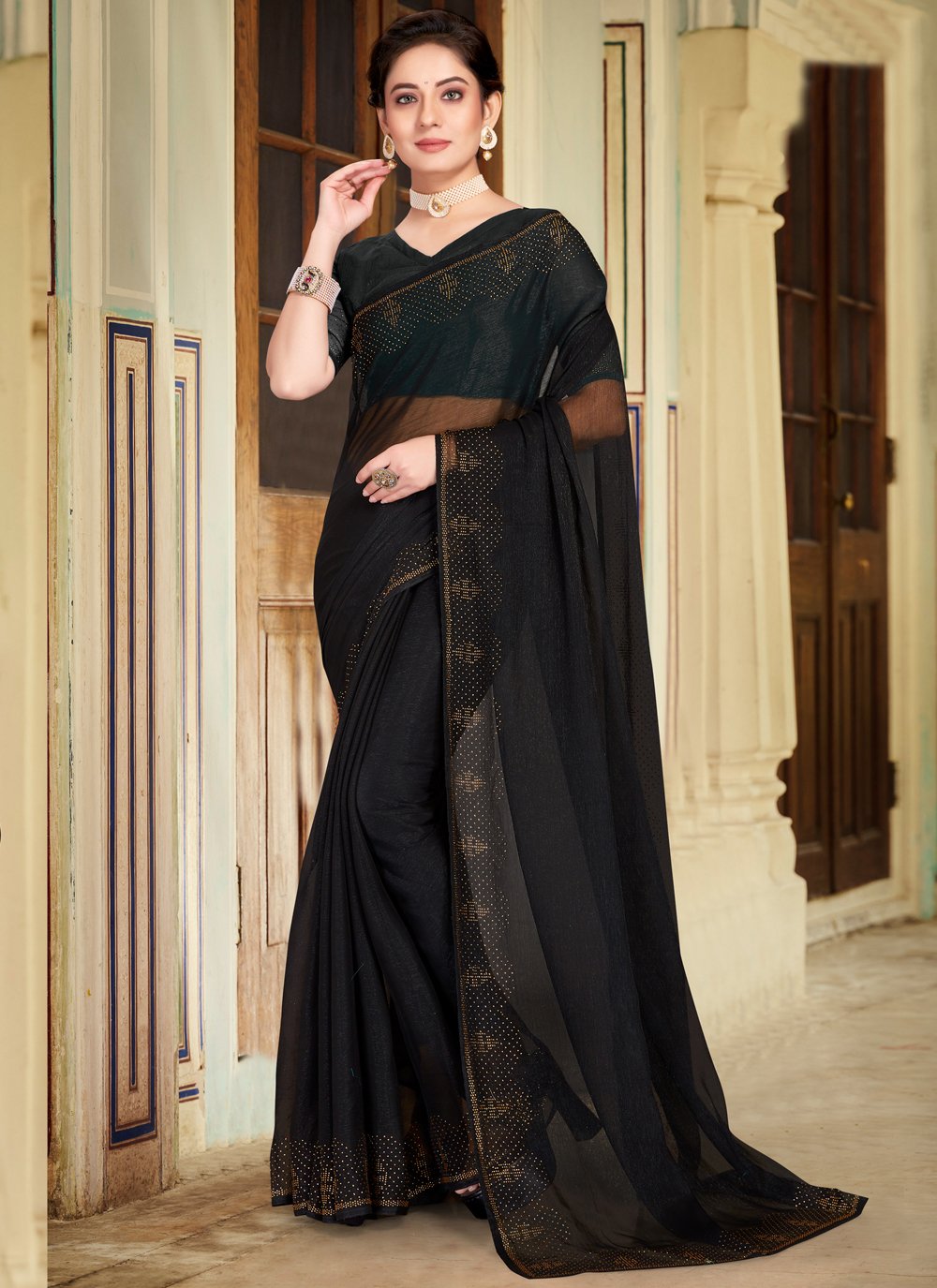 plain black saree with black blouse