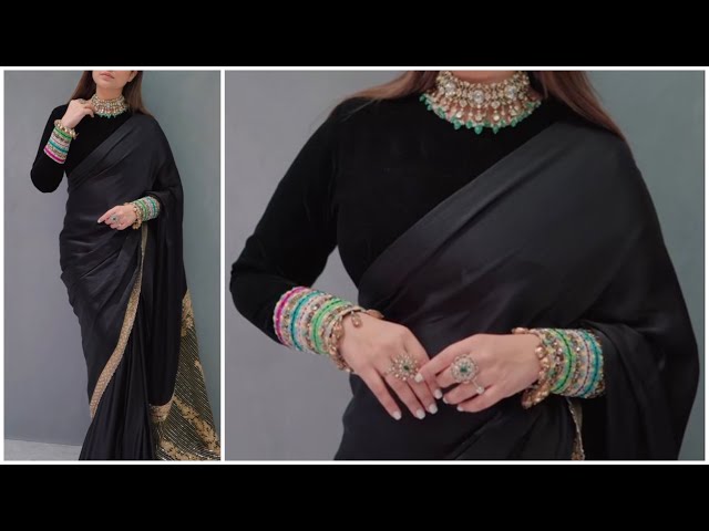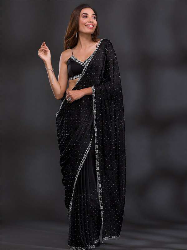 plain black saree with heavy blouse