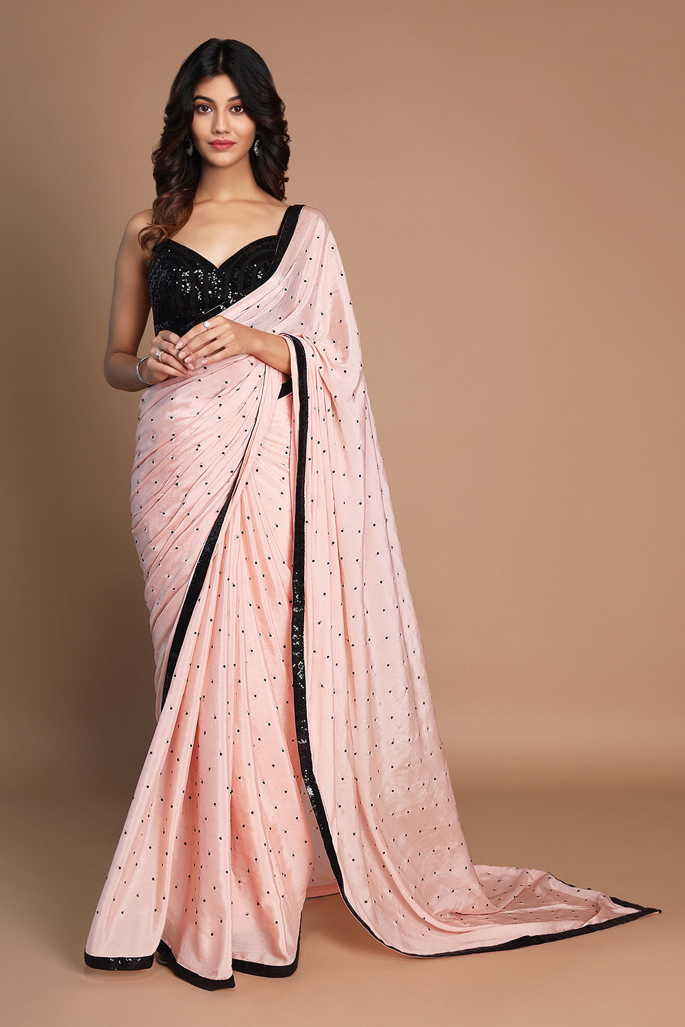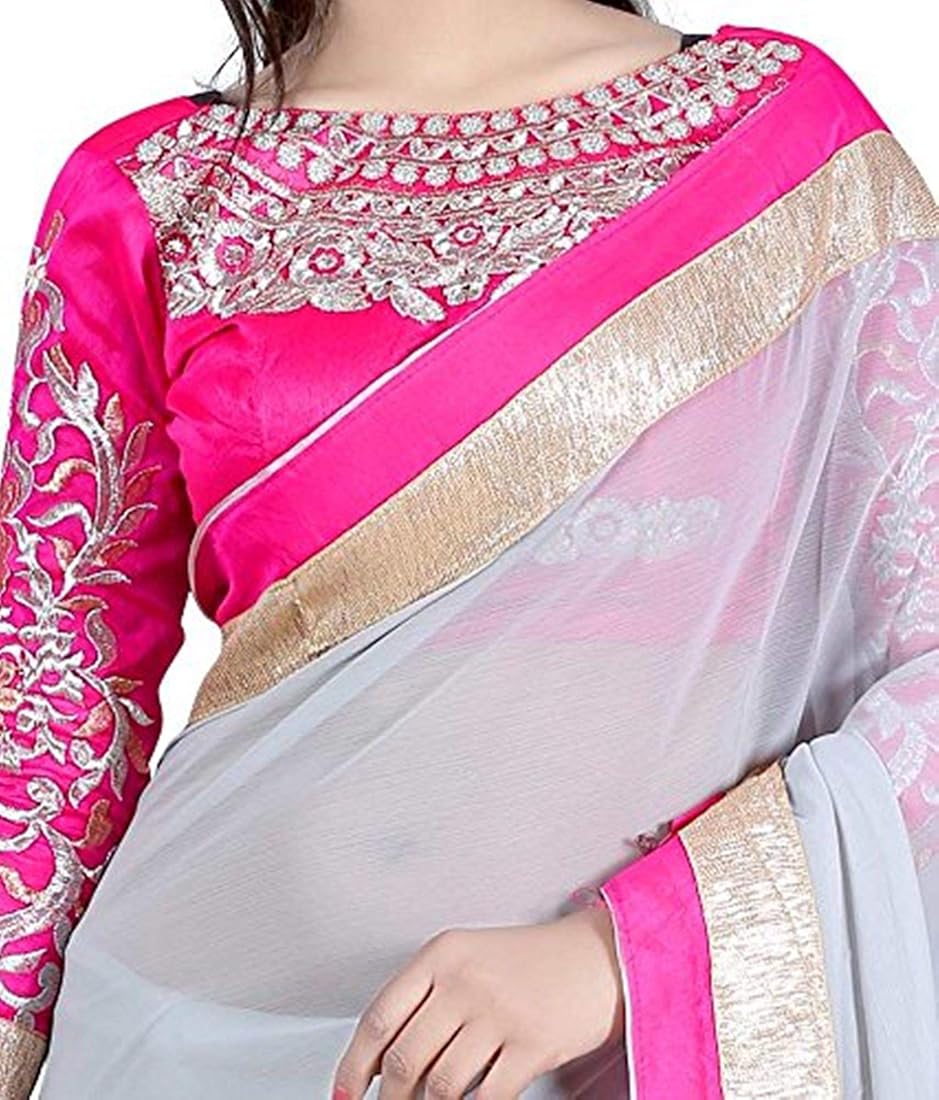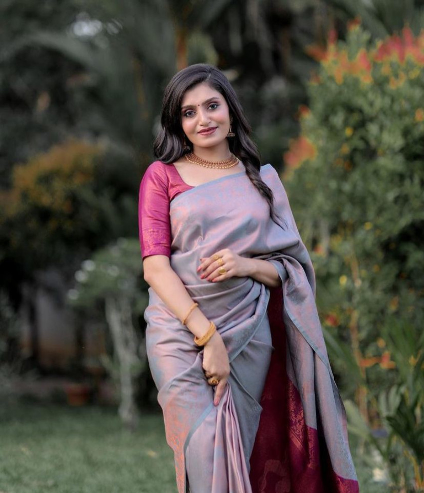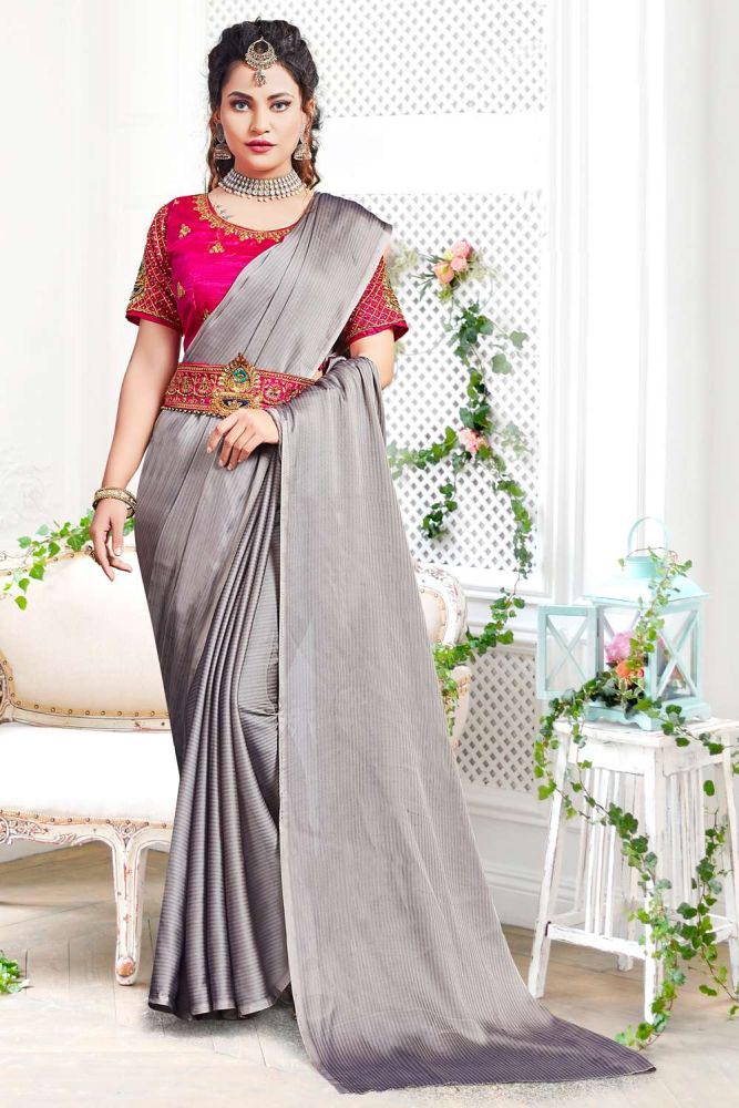 plain grey saree with pink blouse