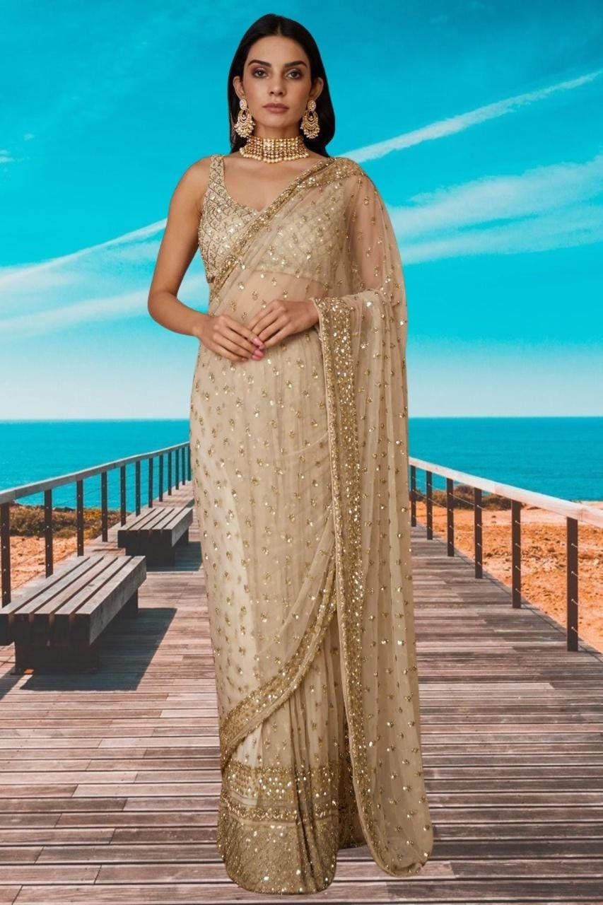 plain saree with digital print blouse