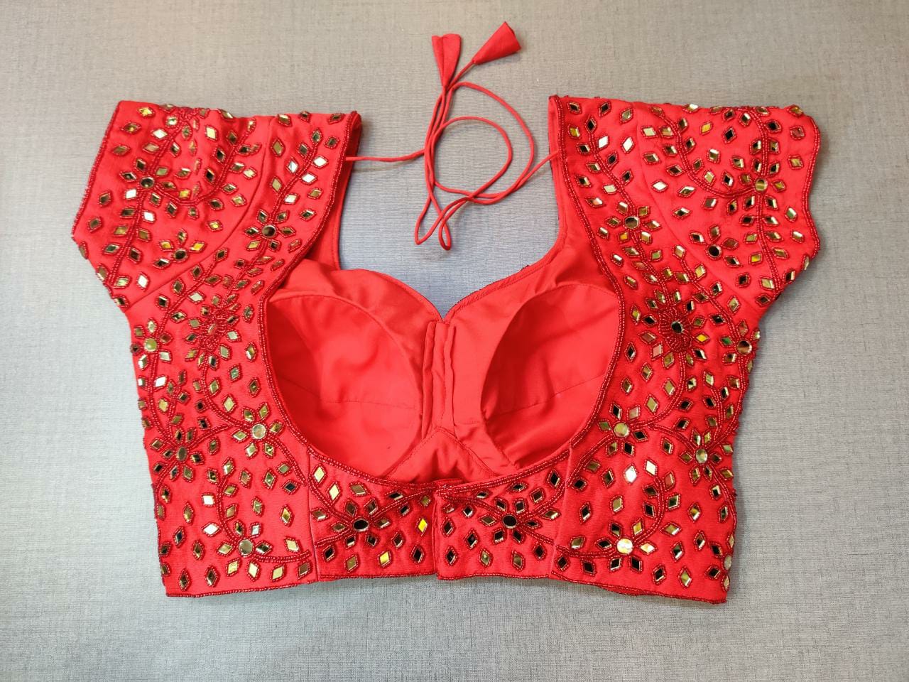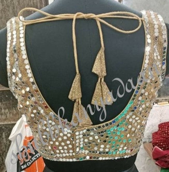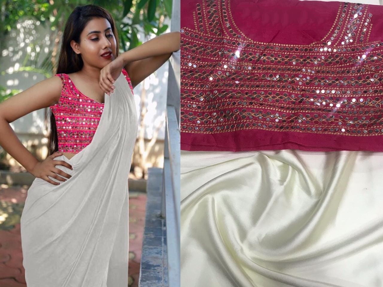 plain saree with mirror work blouse