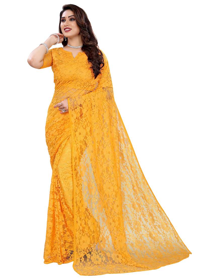 plain saree with net blouse online