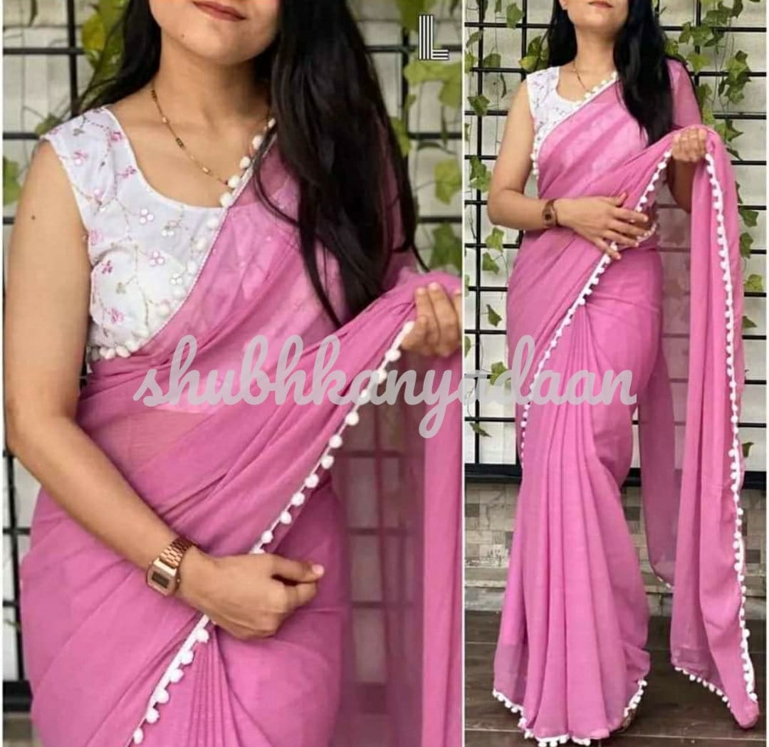plain saree with pink blouse