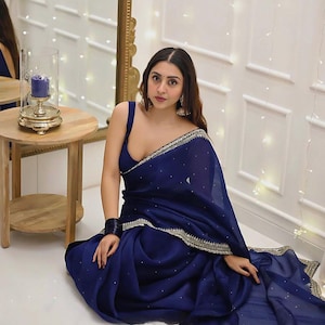 plain saree with sleeveless blouse
