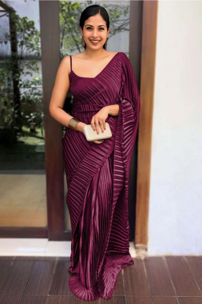 plain satin saree with designer blouse