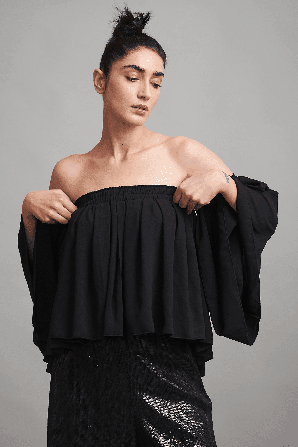 pleated off shoulder top