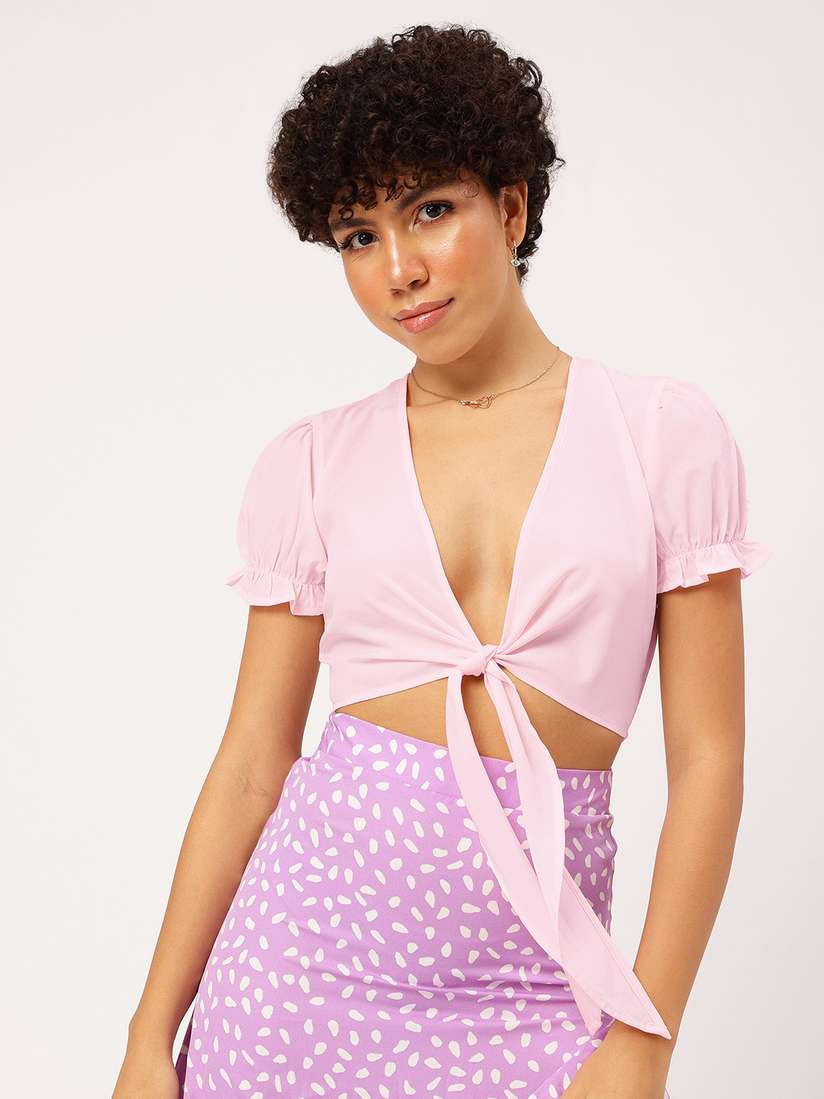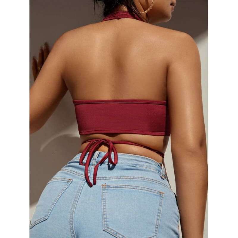 plunging neck tie front top