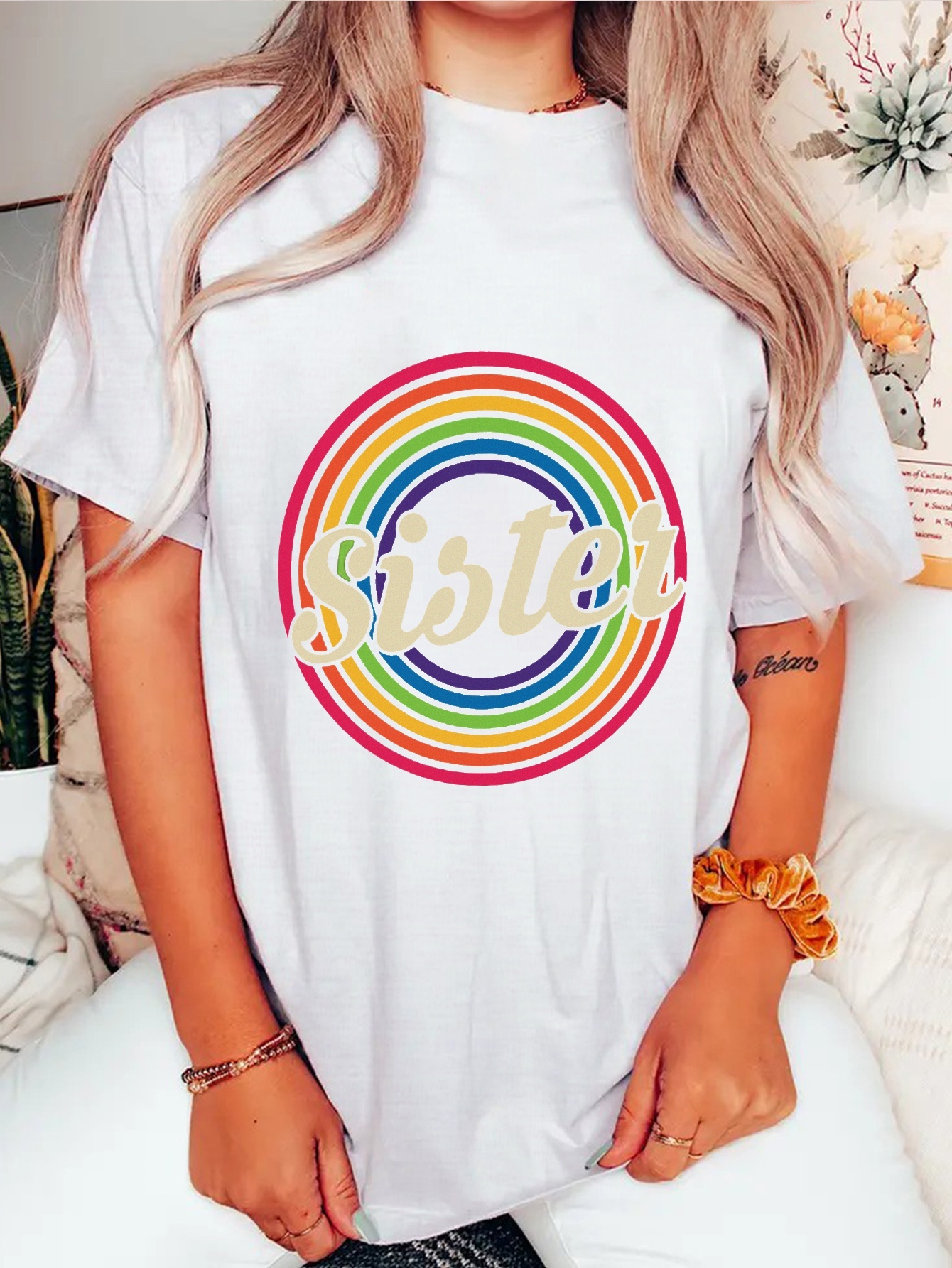 plus size rainbow top