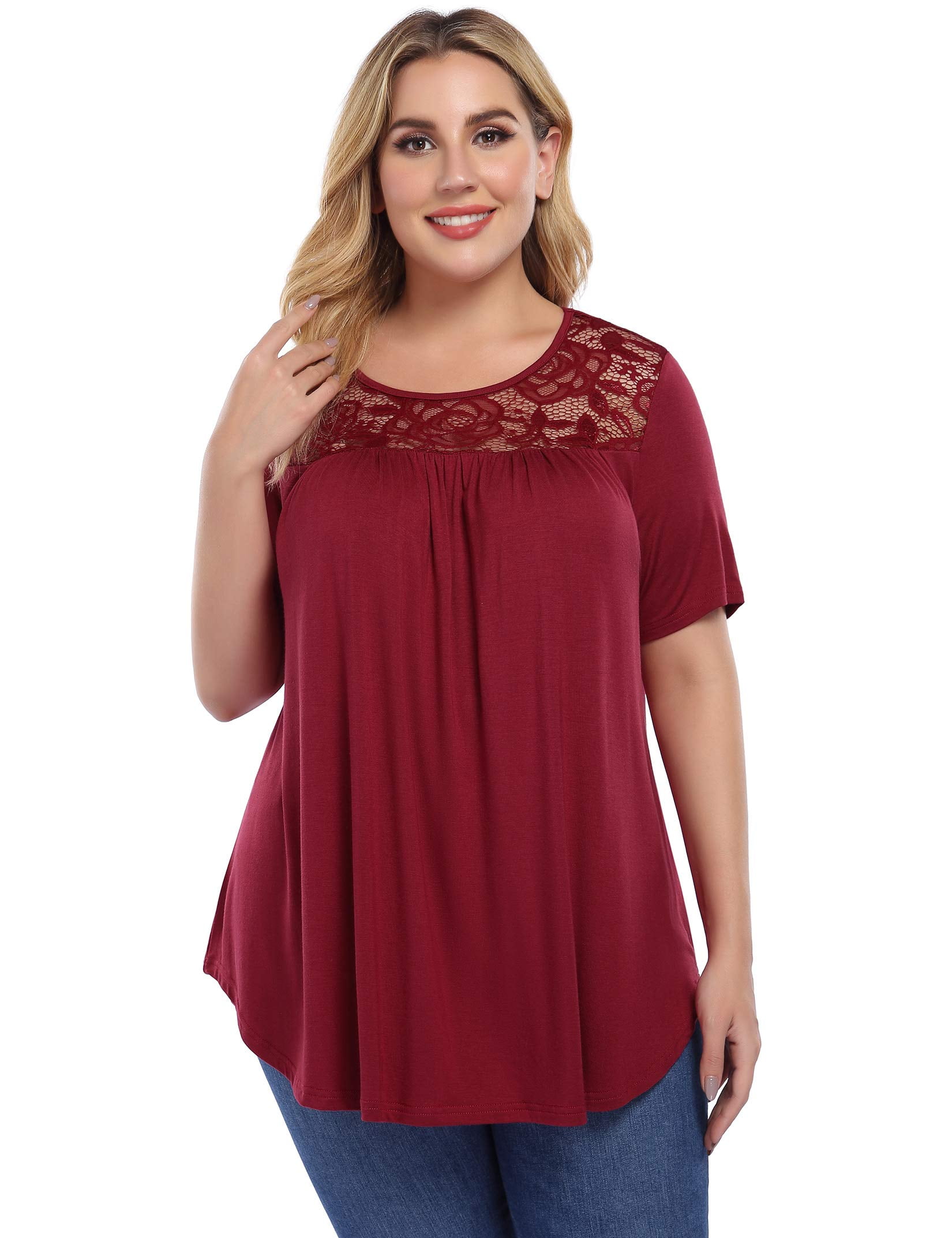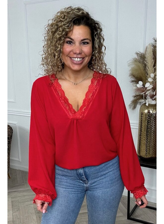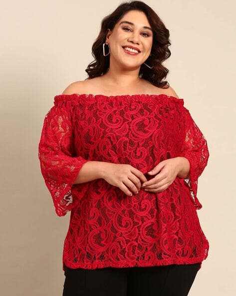 plus size red lace top